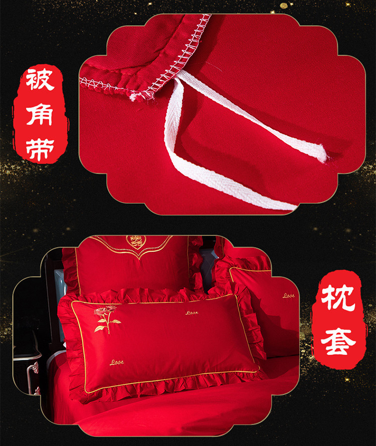 (总)慕她家纺 2025新款磨毛婚庆四件套结婚刺绣花床品六喜庆,爱的约定,百年同心,恩恩爱爱,花好月圆,两心相悦,龙凤传情,龙凤欢腾,龙凤情缘,玫瑰情缘,米兰风情,盛世龙凤,盛世庄园 大红,盛世庄园 经典灰,盛世庄园 孔雀兰,盛世庄园 浪漫玉,盛世庄园 魅力紫,盛世庄园 雅豆沙,双喜情缘,天缘巧合,天作之合,喜笑颜开,幸福满园,幸福如意,一见钟情,鸳鸯同心,张灯结彩