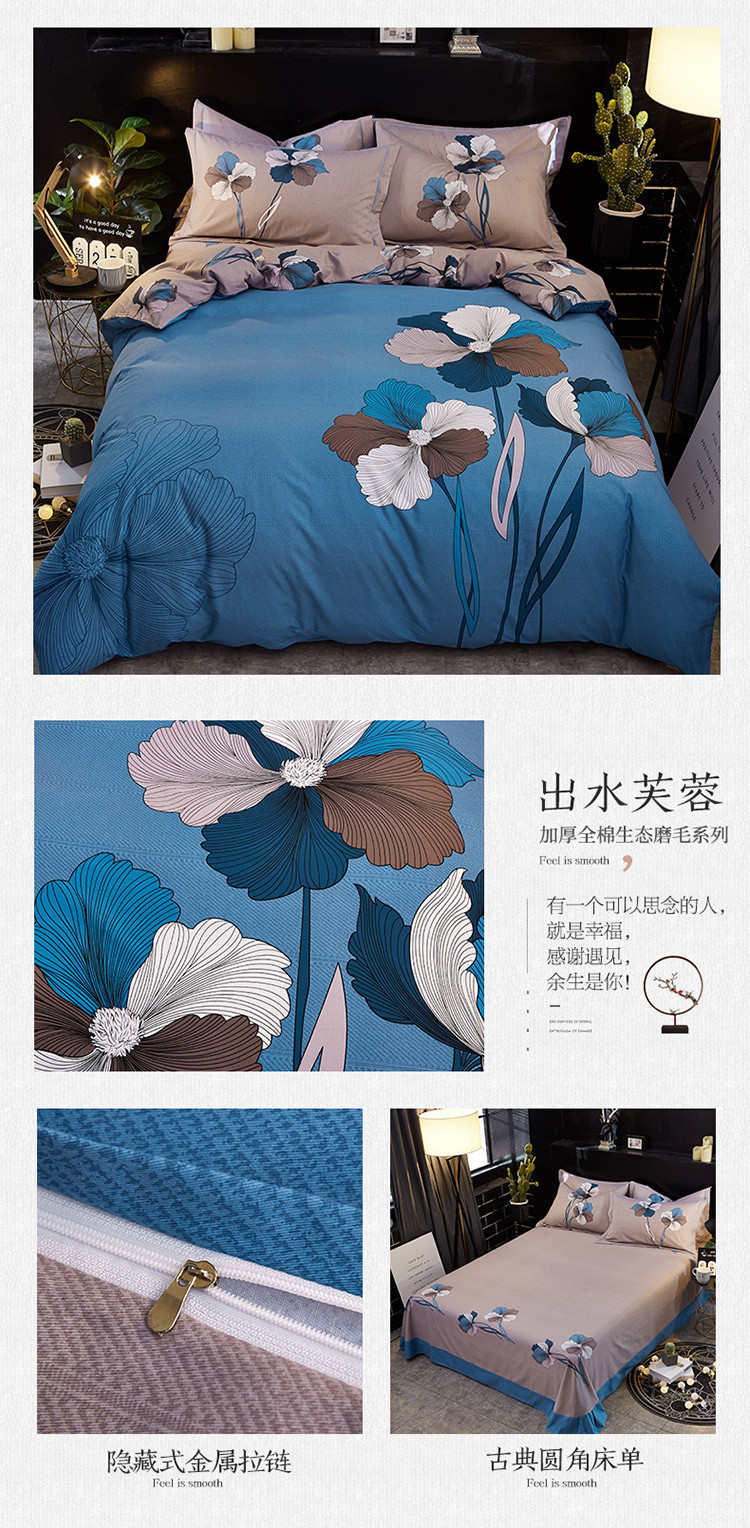 雲归梦 2020新款全棉生态磨毛大版四件套 出水芙蓉