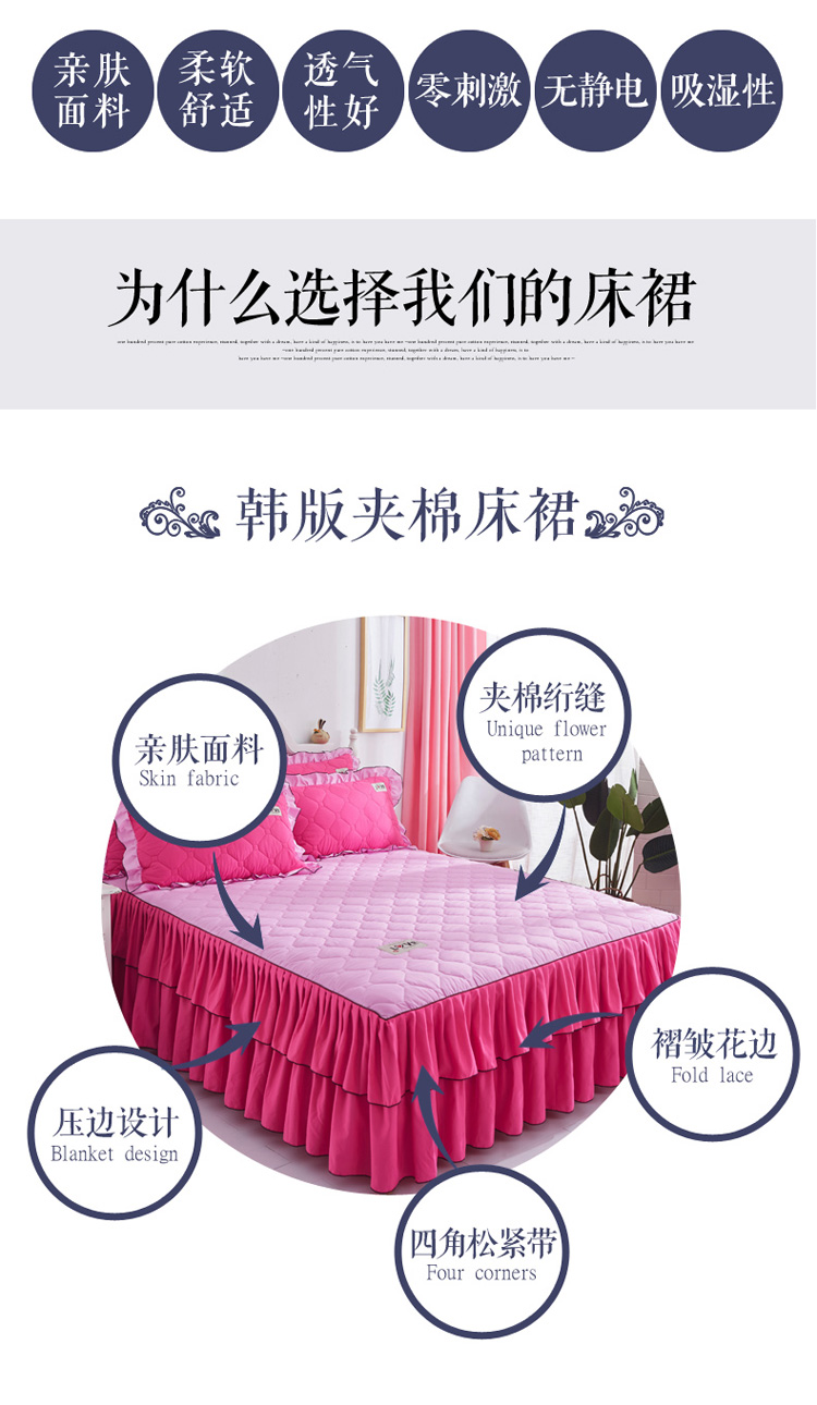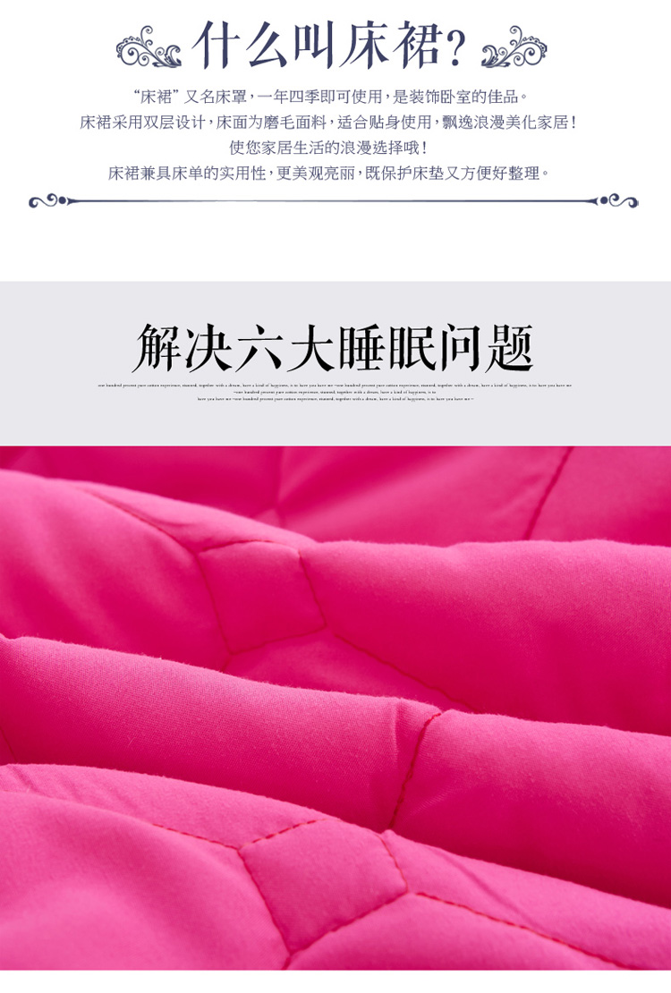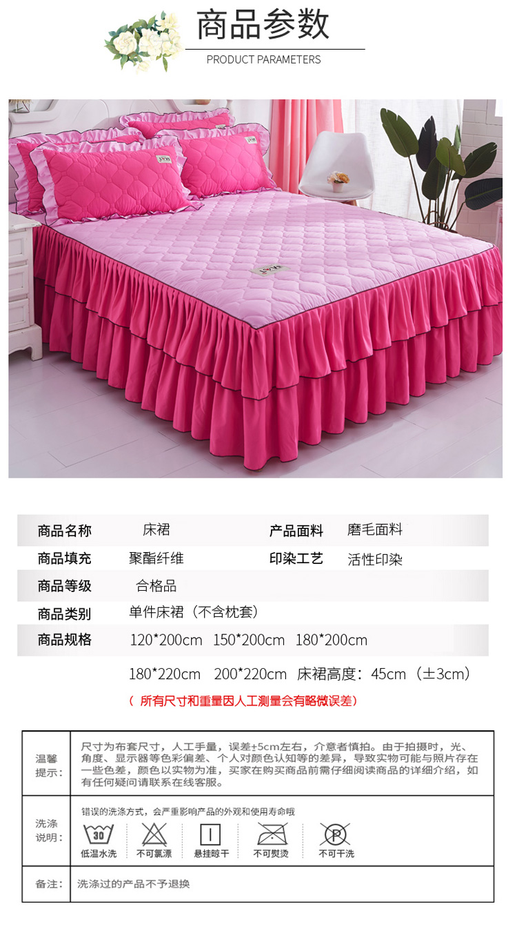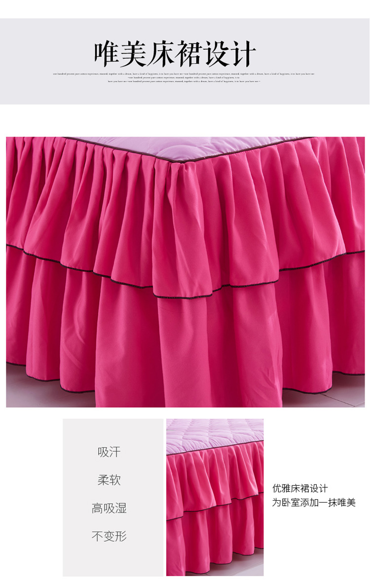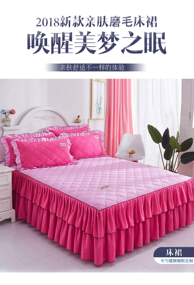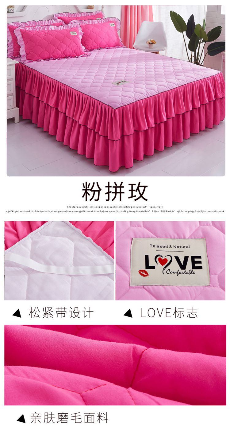 (总)艾裙海 2025新款90克磨毛夹棉绗缝床裙,粉色,大红色,米白色,深灰色,紫色,藏青色,宝蓝色,浅灰色,粉玉色,豆沙红
