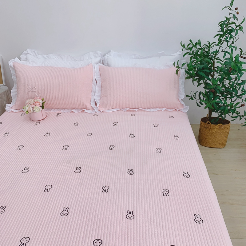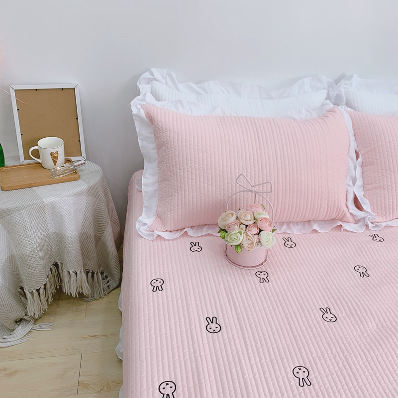 漫调 2022新款ins风韩版床盖三件套 萌兔子粉