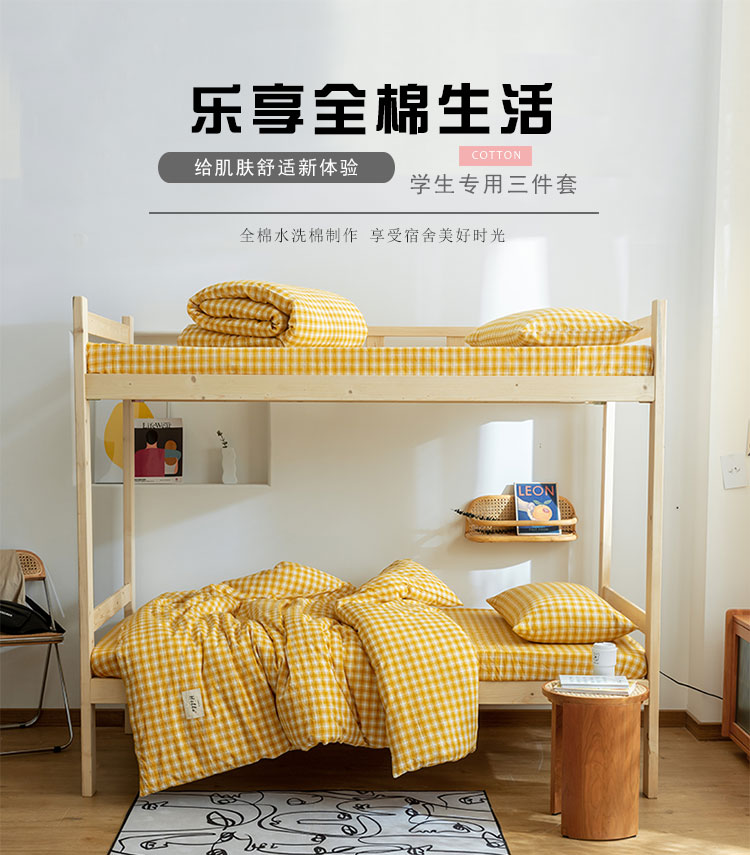 寐眠 2021新款全棉水洗棉无印学生三件套四件套 炫彩黄