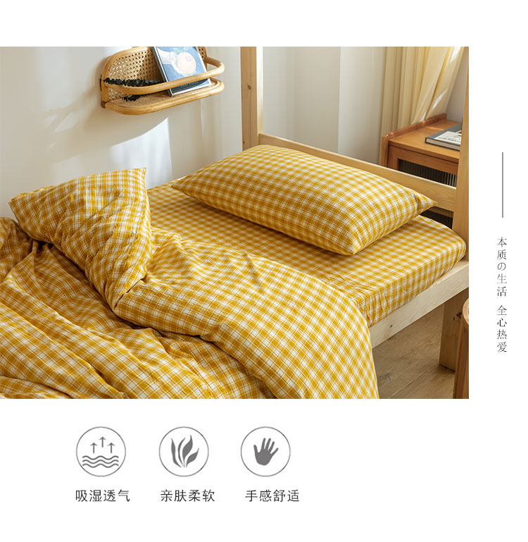 商品名称:寐眠 2021新款全棉水洗棉无印学生三件套四件套 炫彩黄