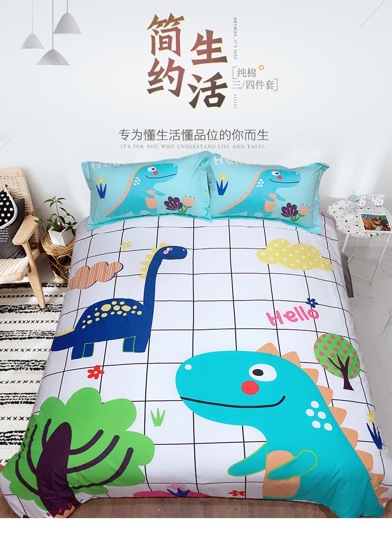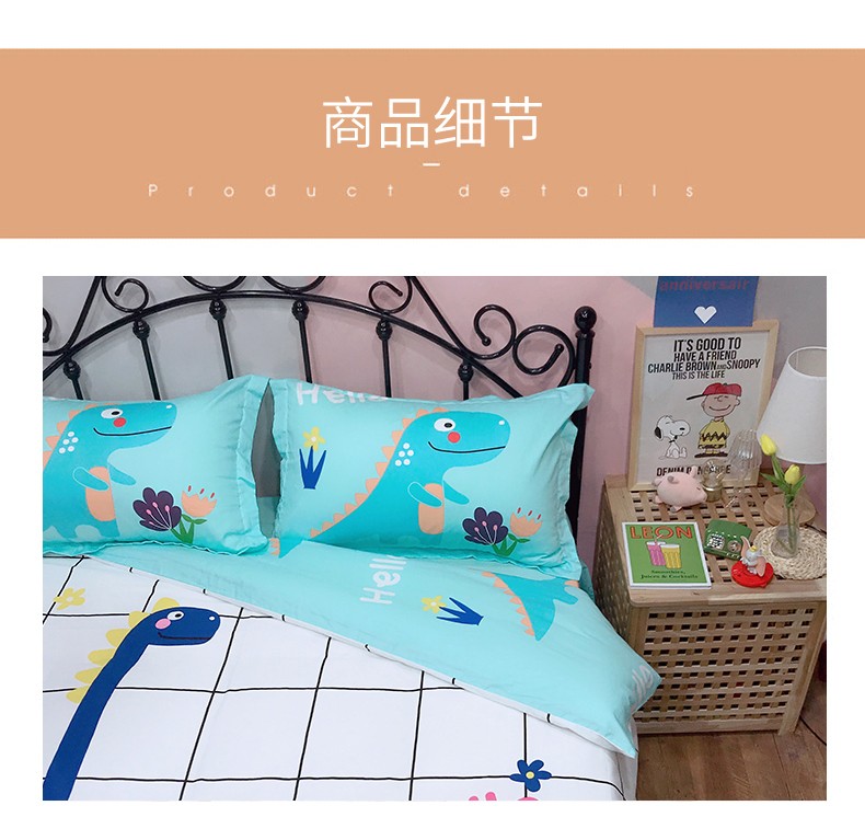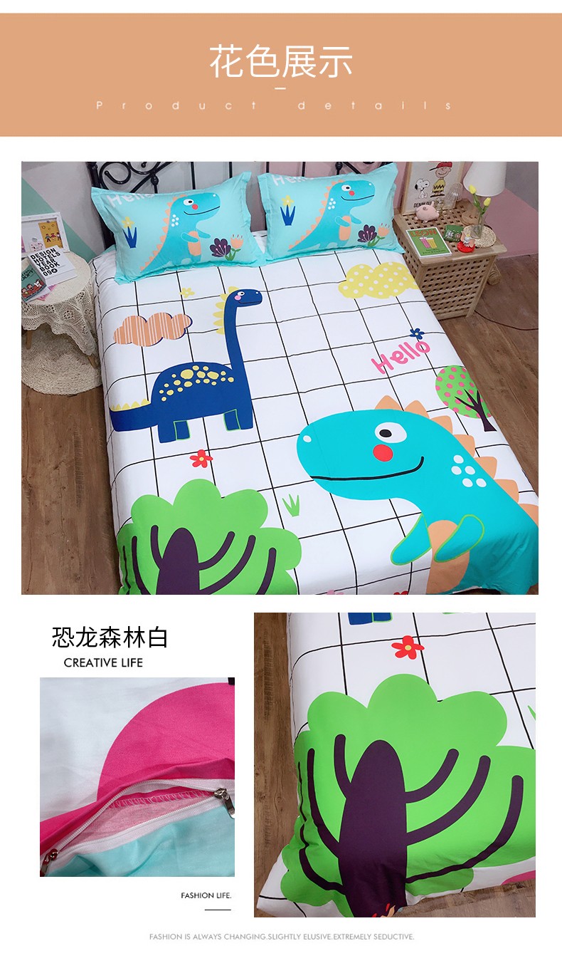 商品名称:金爱家 2021新款13070卡通全棉四件套 独家恐龙森林白