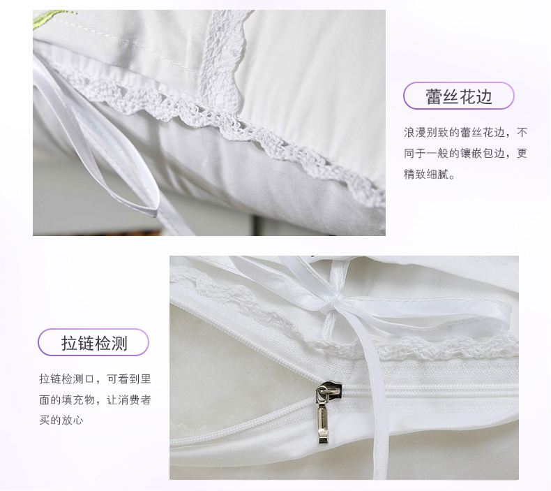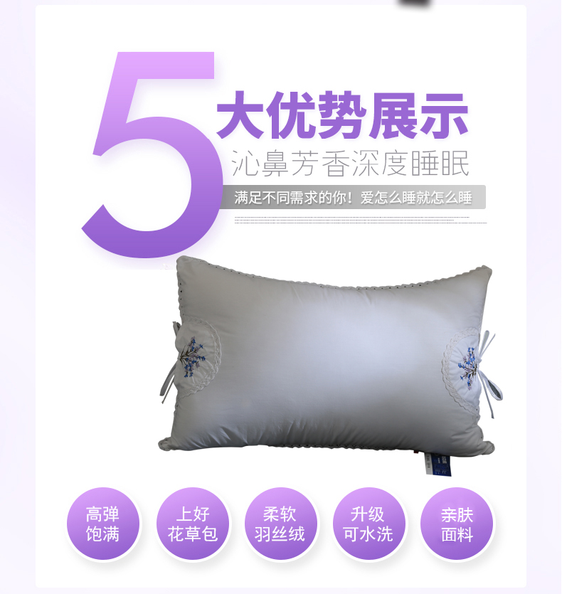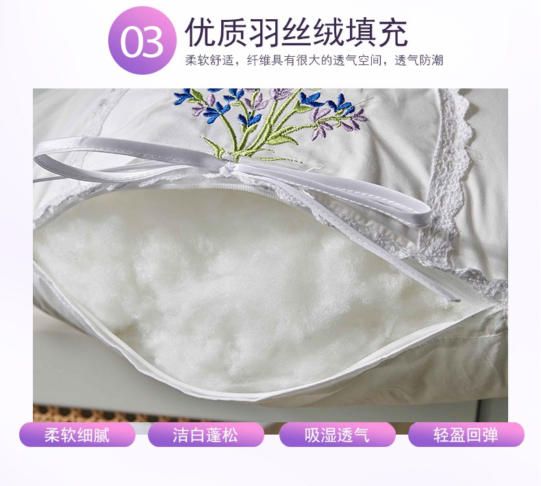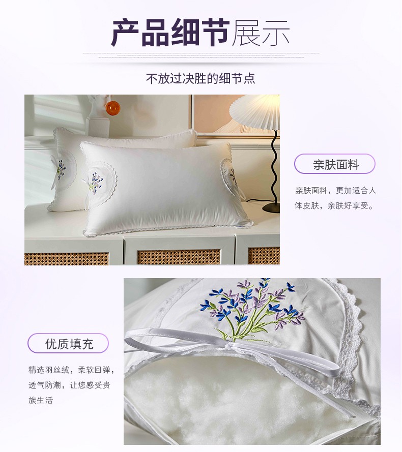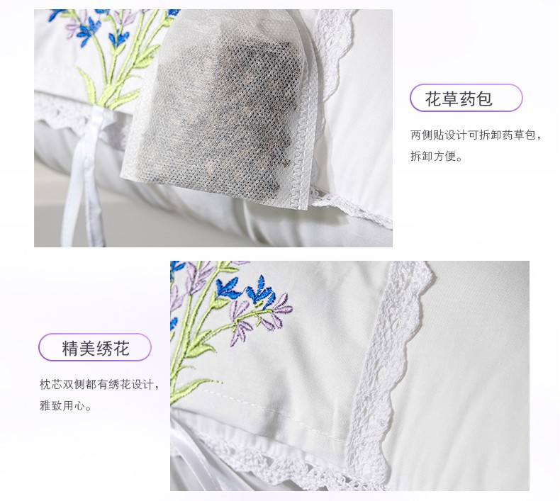 当前位置: 91家纺网 > 商品网购 > 枕头/枕芯/保健枕/颈椎枕 > 普通枕芯 > 赛格时代家居枕芯 全棉绣花薰衣草羽丝绒枕 枕头