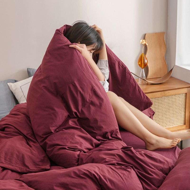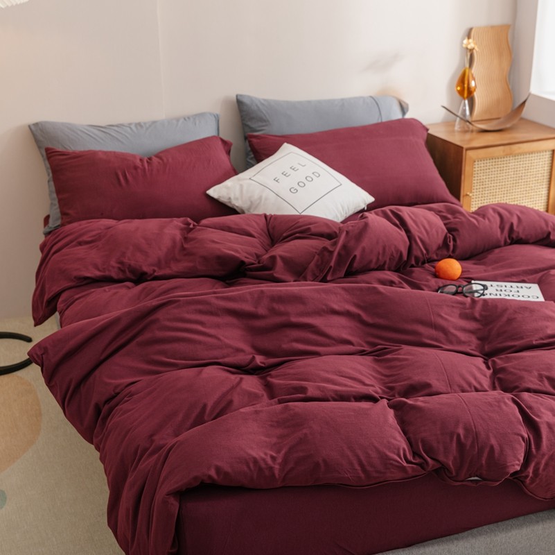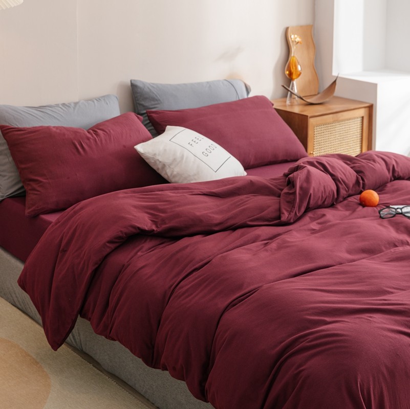 商品名称:简煦 2025新款针织印染纯色四件套 印-酱紫