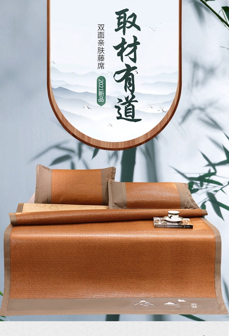 恋佳2025新款双面藤席三件套-印尼双面藤席