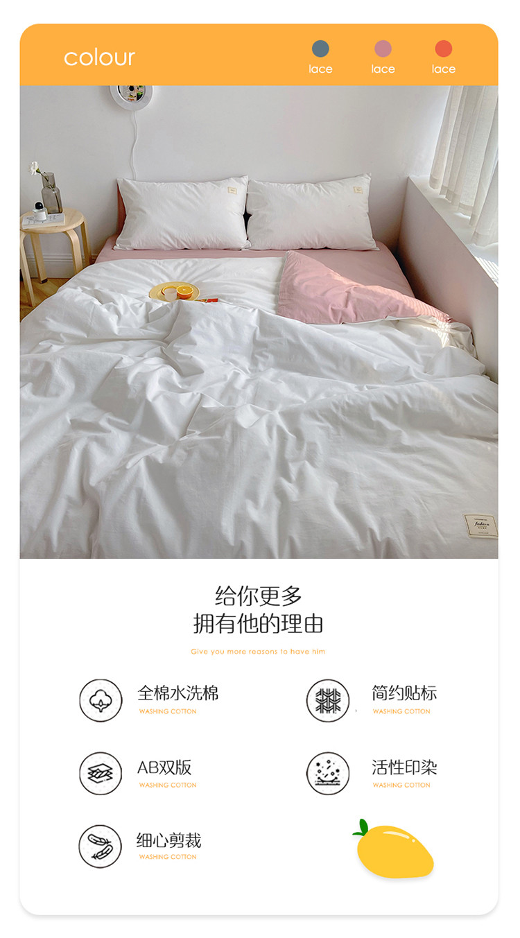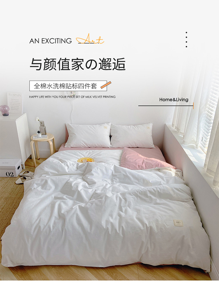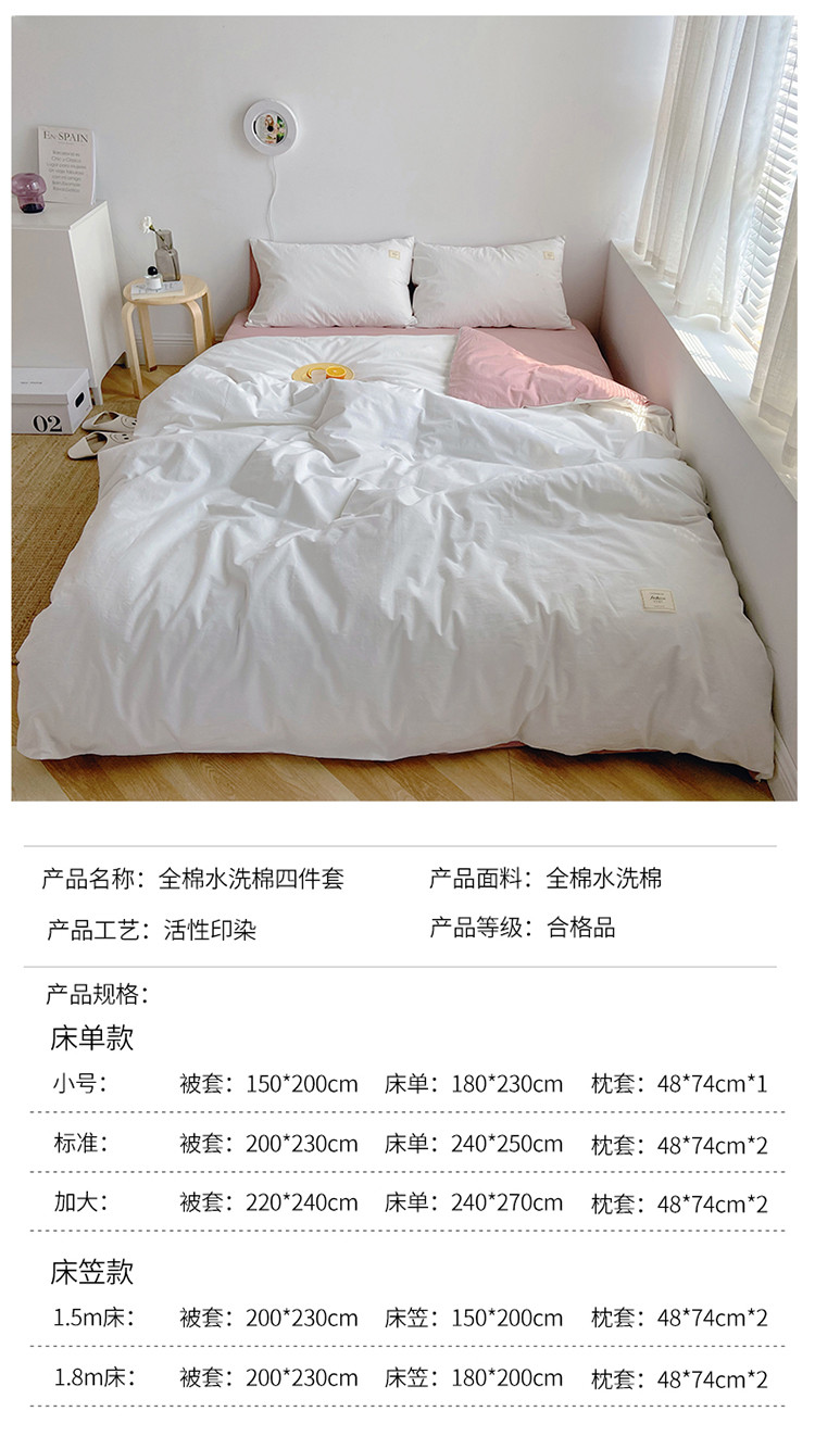 (总)雅居纺家纺 2022新款全棉水洗棉四件套,Ins粉蓝,ins浅蓝,白+墨子绿,白+绅士红,低调灰,低调灰绅士灰,豆绿+米黄,复古绿卡其,果绿绅士黄,焦糖咖啡,咖啡+卡其,米黄,米黄+明黄,米黄咖啡,米黄水绿,墨子绿,墨子绿卡其,墨子绿绅士黄,牛仔蓝低调灰,浅蓝深灰,清雅蓝绅士灰,绅士红卡其,绅士黄卡其,绅士灰,新蓝米黄