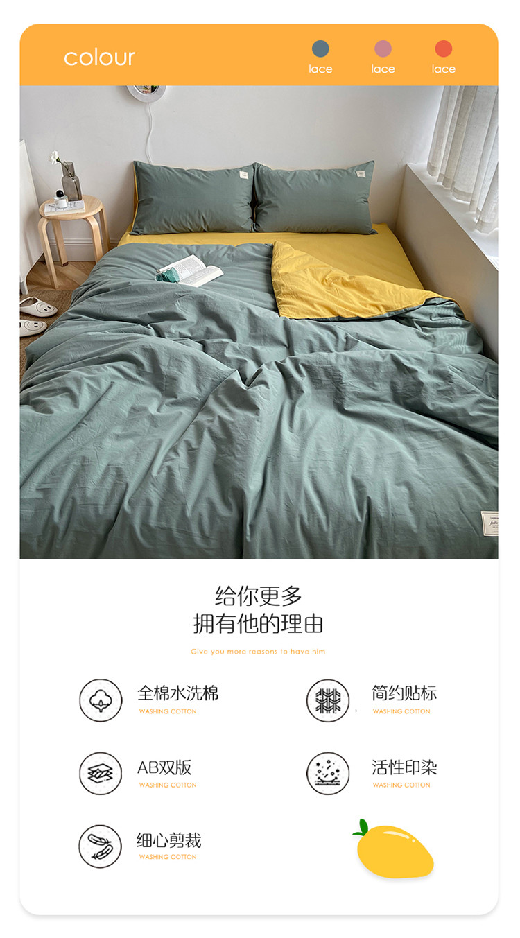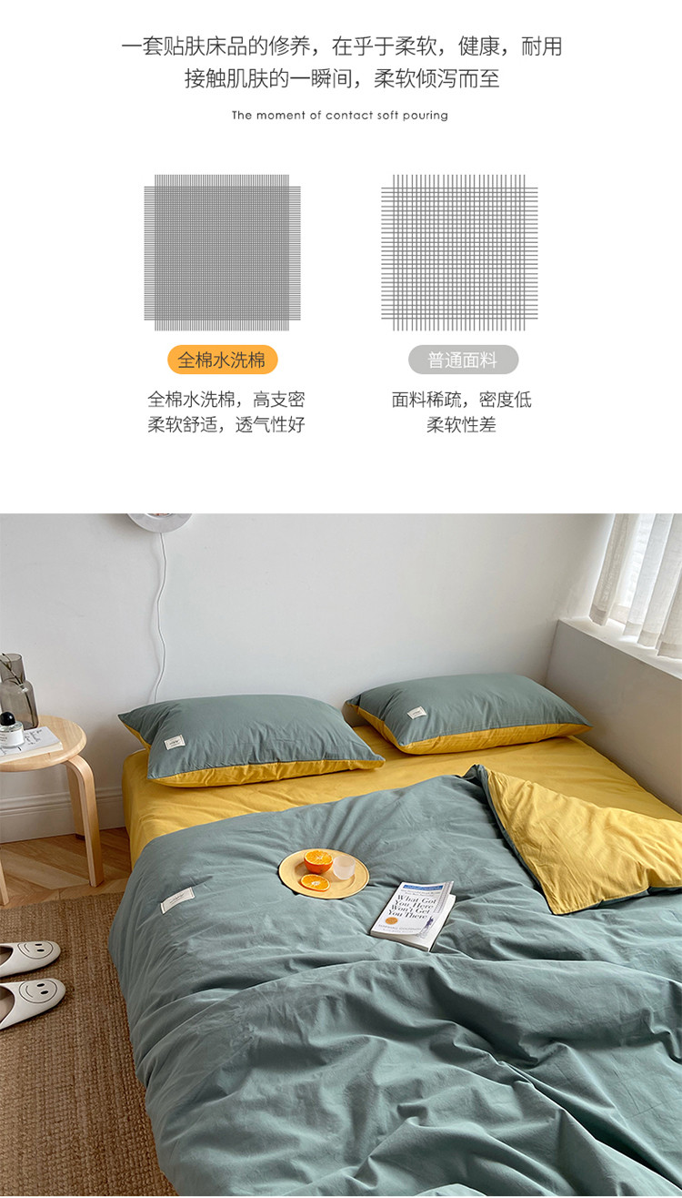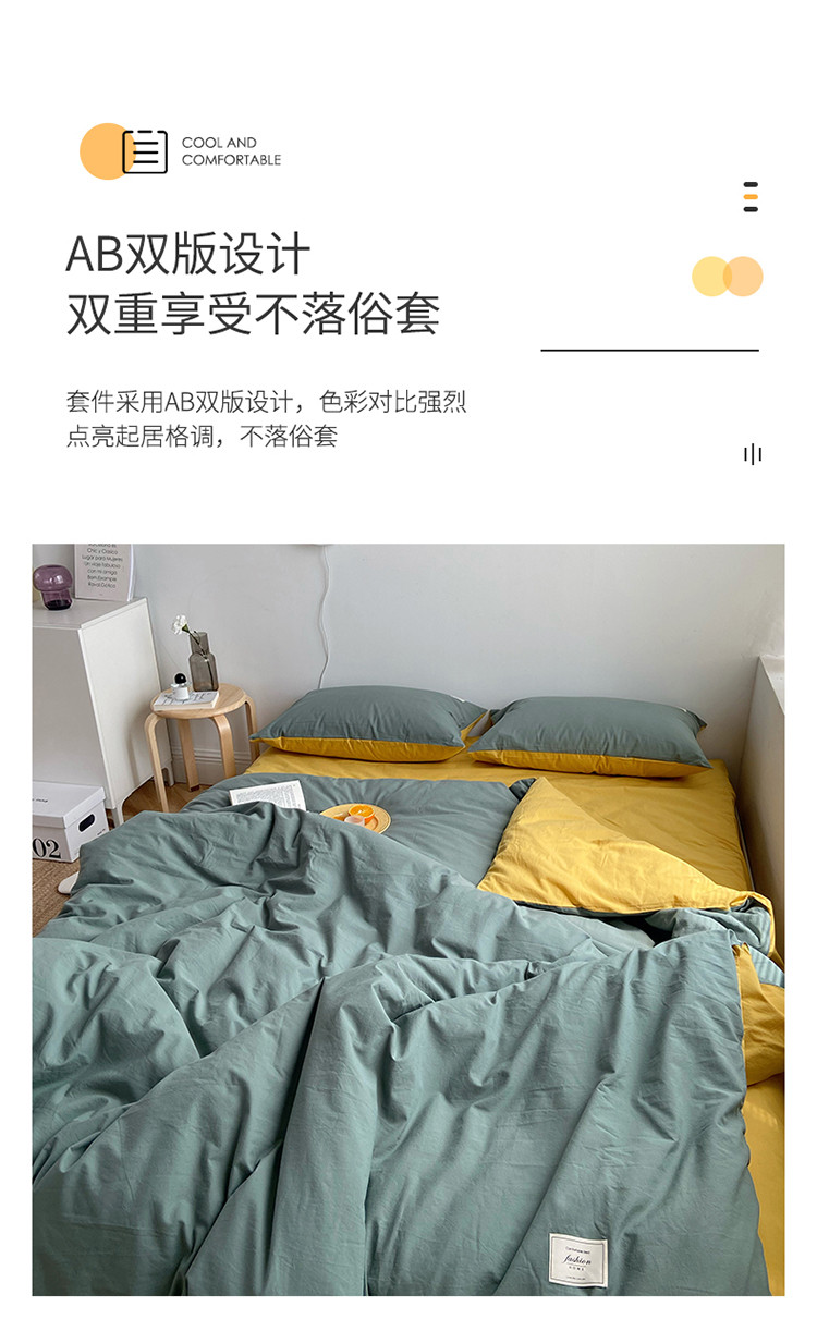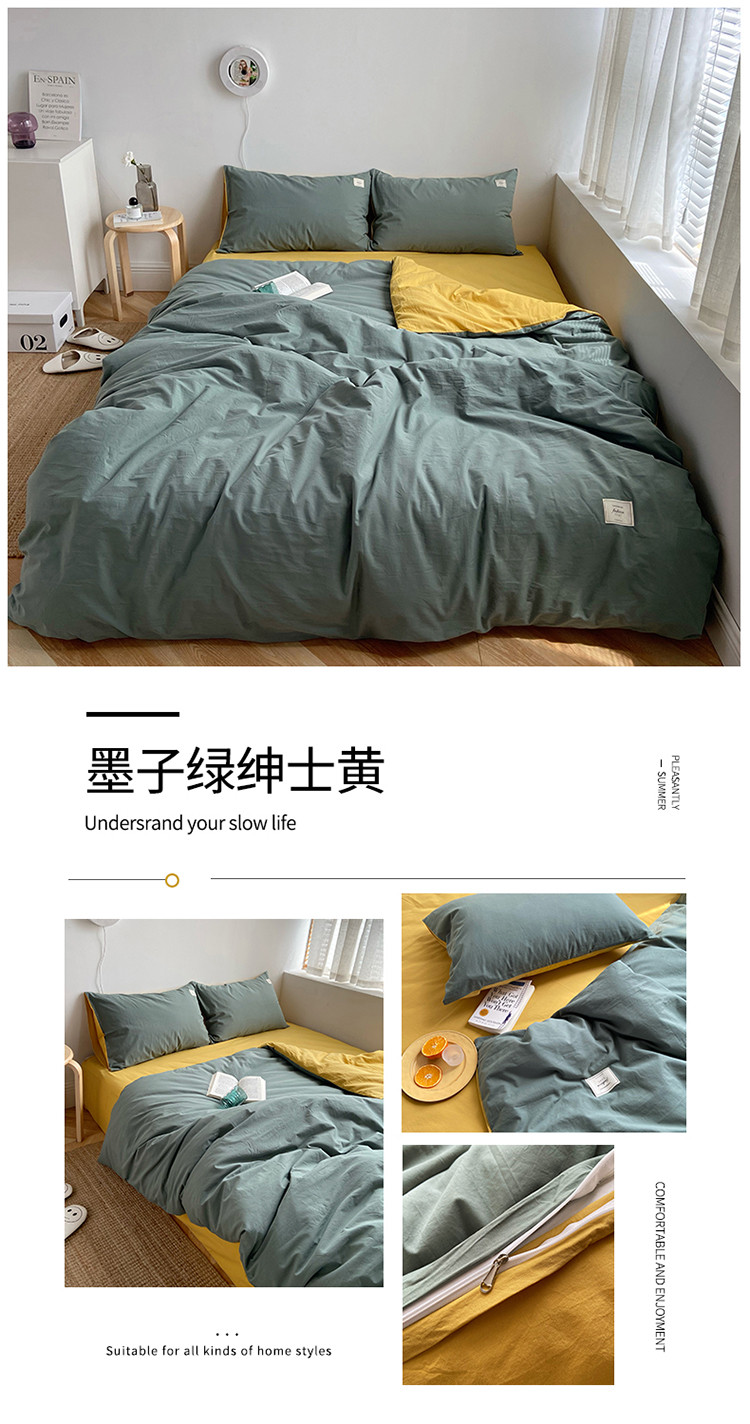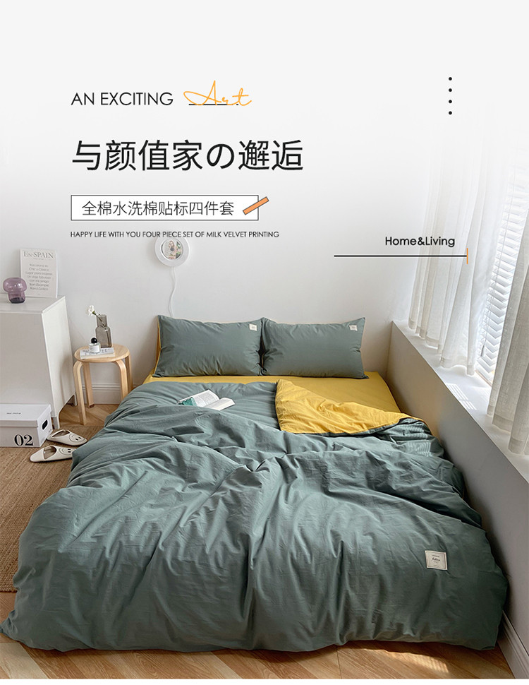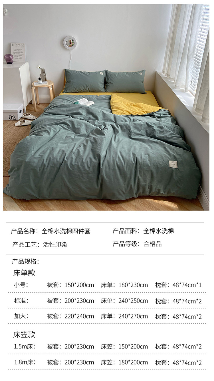 (总)雅居纺家纺 2022新款全棉水洗棉四件套,Ins粉蓝,ins浅蓝,白+墨子绿,白+绅士红,低调灰,低调灰绅士灰,豆绿+米黄,复古绿卡其,果绿绅士黄,焦糖咖啡,咖啡+卡其,米黄,米黄+明黄,米黄咖啡,米黄水绿,墨子绿,墨子绿卡其,墨子绿绅士黄,牛仔蓝低调灰,浅蓝深灰,清雅蓝绅士灰,绅士红卡其,绅士黄卡其,绅士灰,新蓝米黄