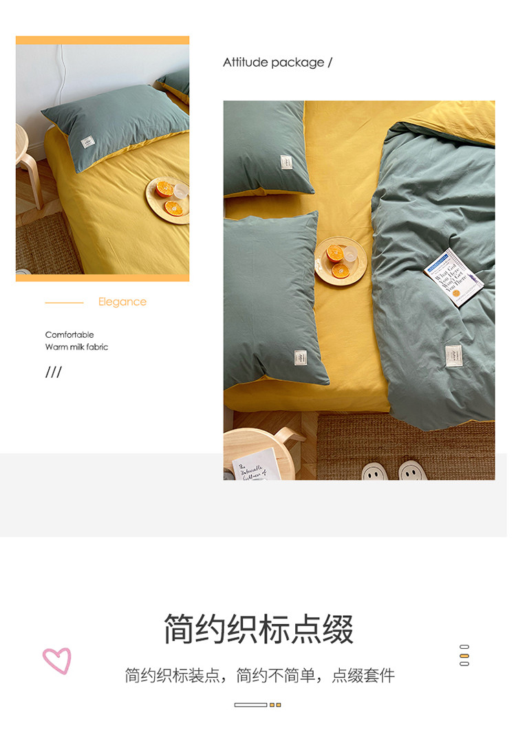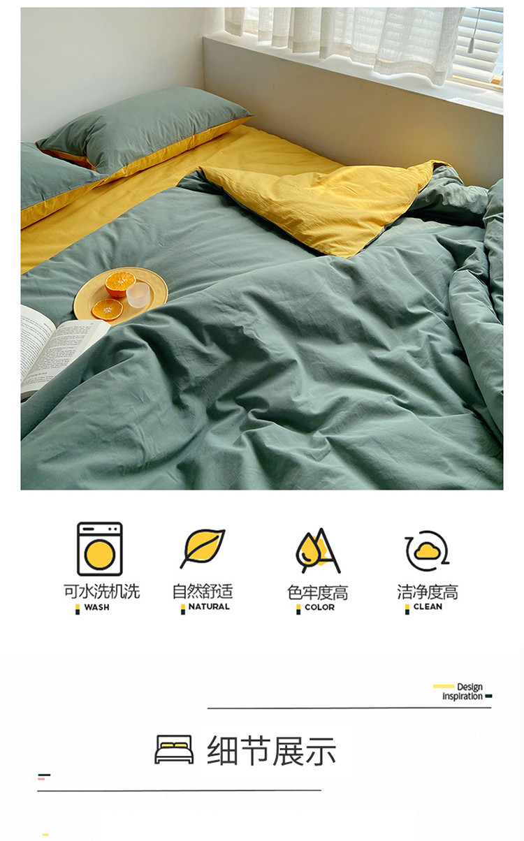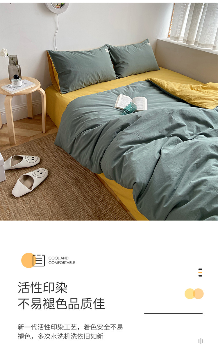 商品名称:雅居纺家纺 2022新款全棉水洗棉四件套 墨子绿绅士黄