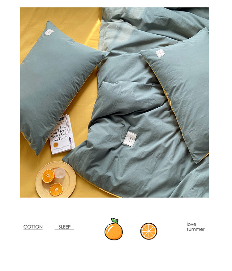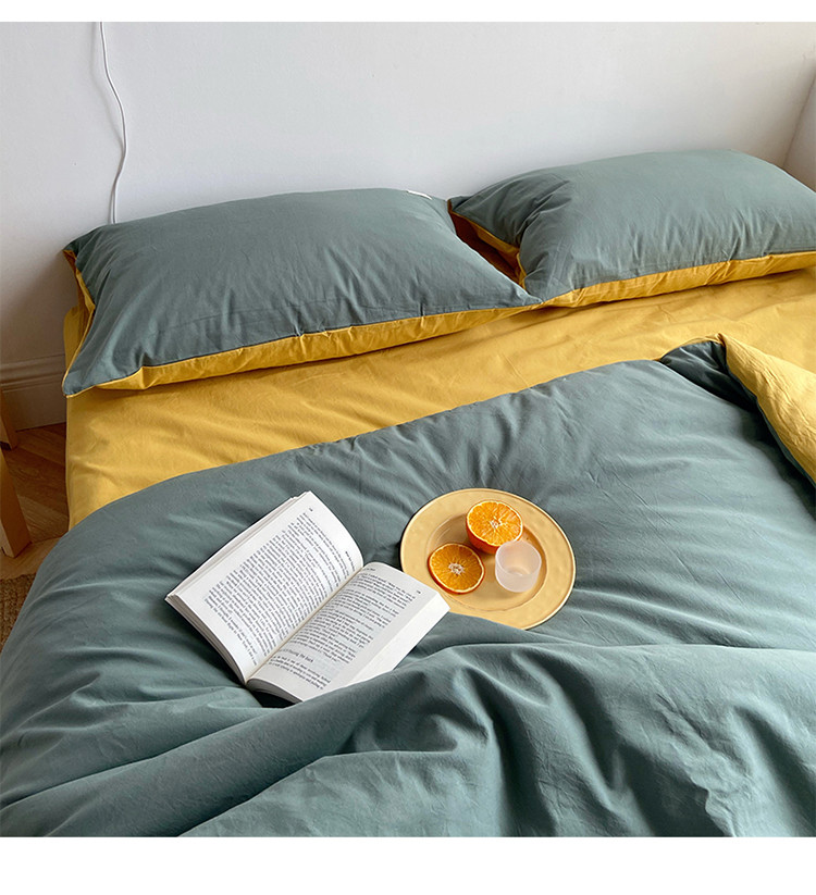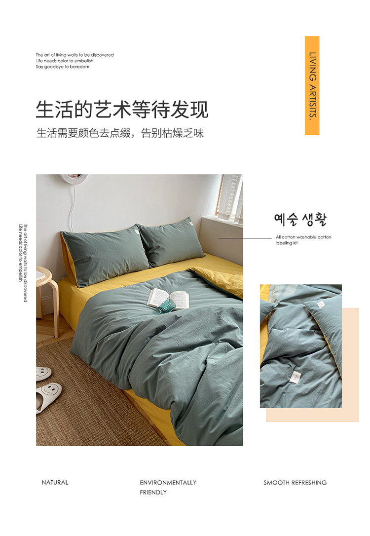 雅居纺家纺 2022新款全棉水洗棉四件套 墨子绿绅士黄