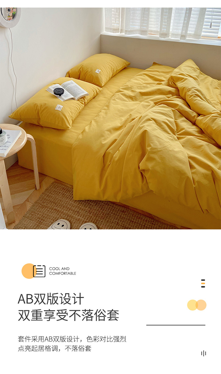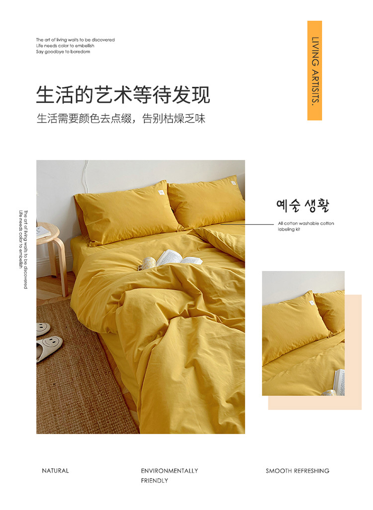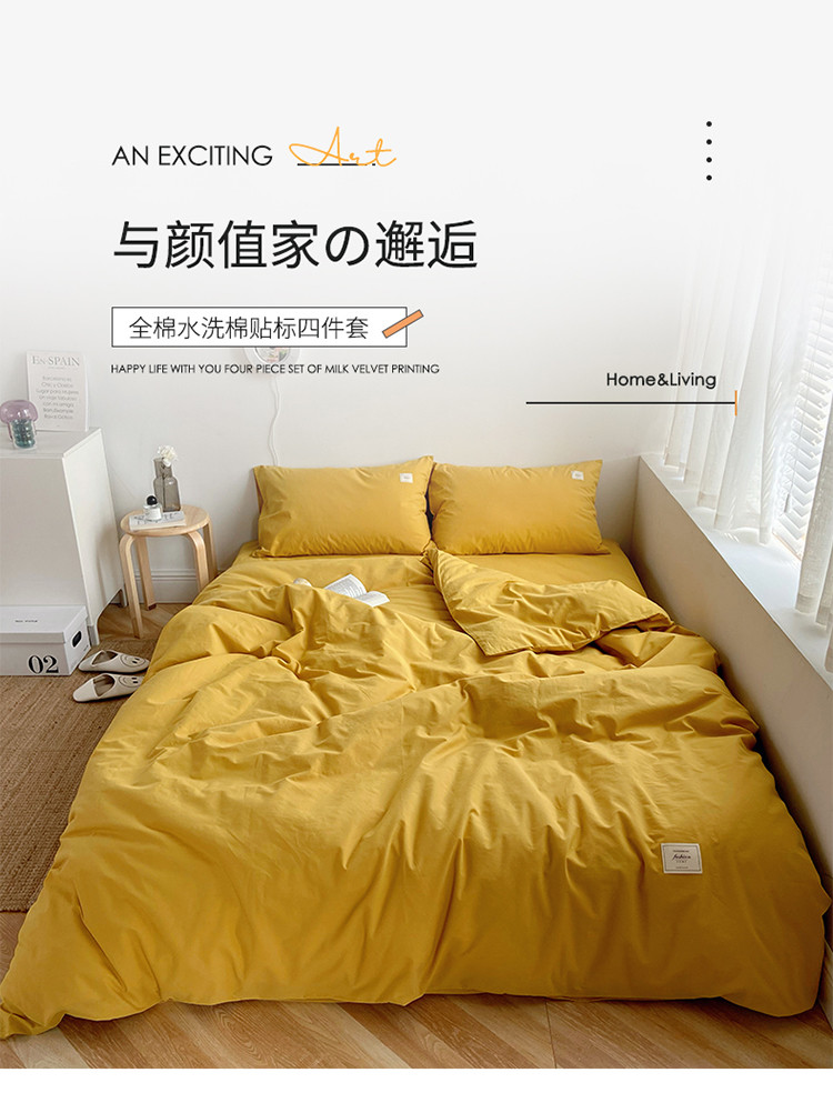 雅居纺家纺 2022新款全棉水洗棉四件套 绅士黄