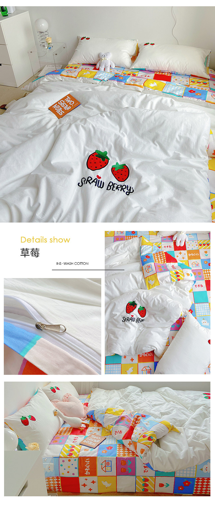 (总)雅居纺家纺 2022新款13070全棉印花四件套,草莓蝴蝶结,俄罗斯方块,黑白蝴蝶结,很嗨兔,可爱小兔,快乐花海,牛奶纹,胖胖鸭,棋盘格,日月争辉,西部恐龙,小情调,小桃桃