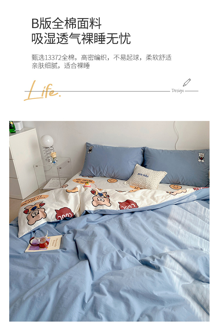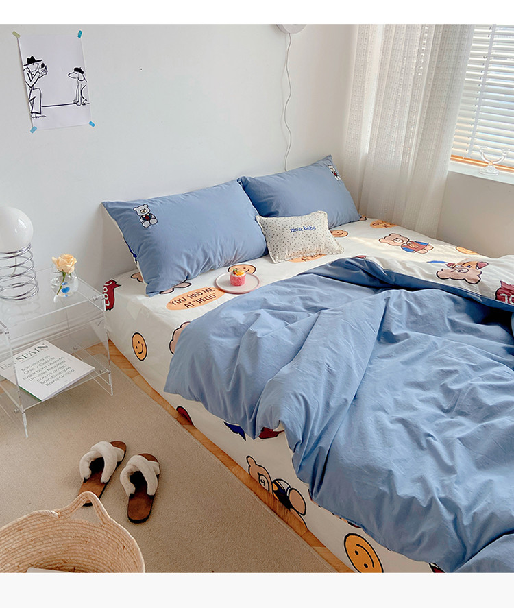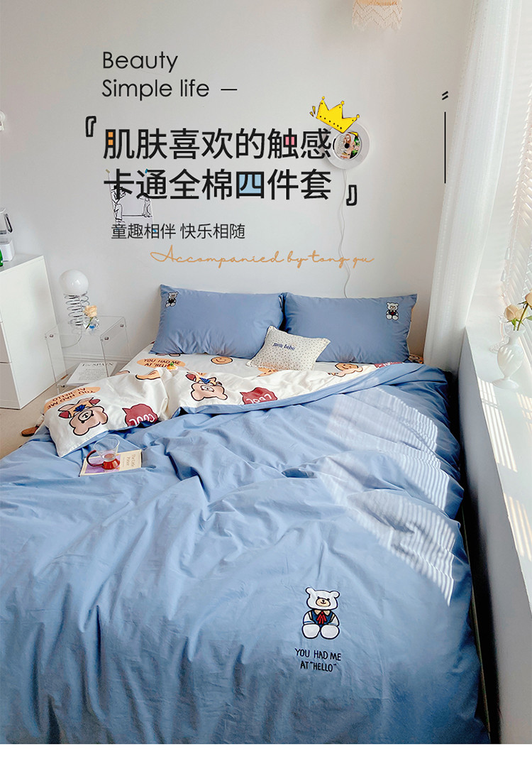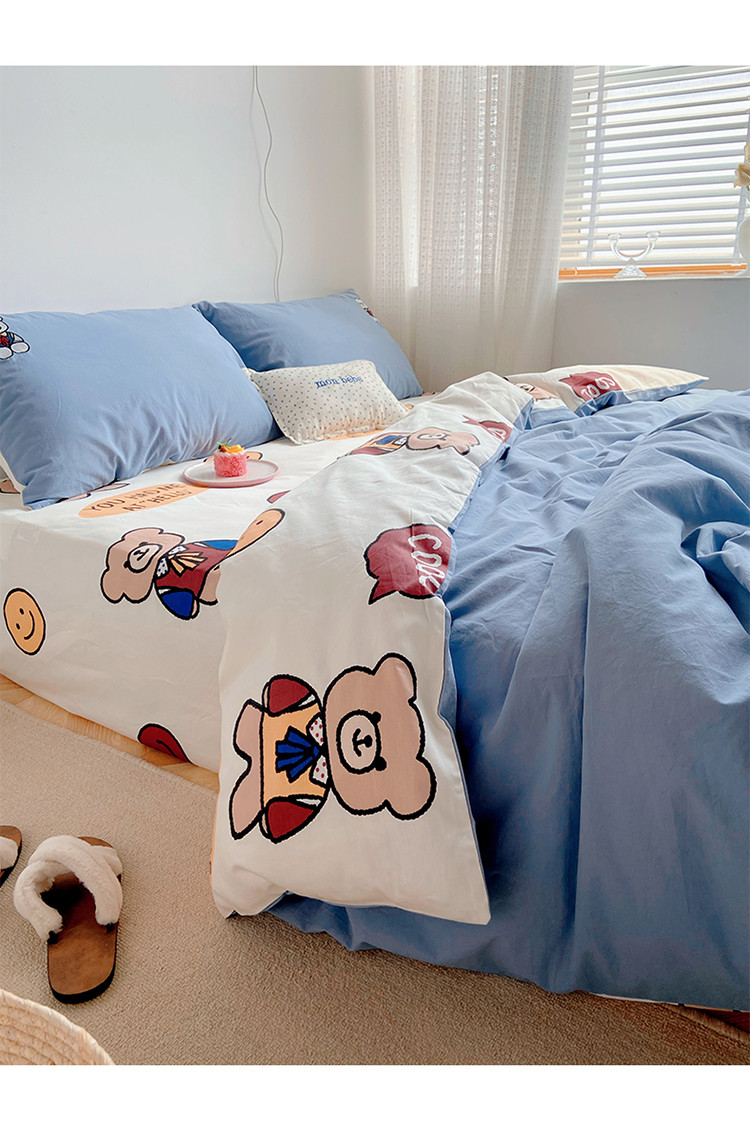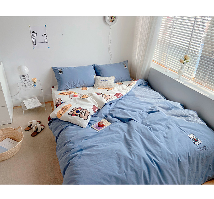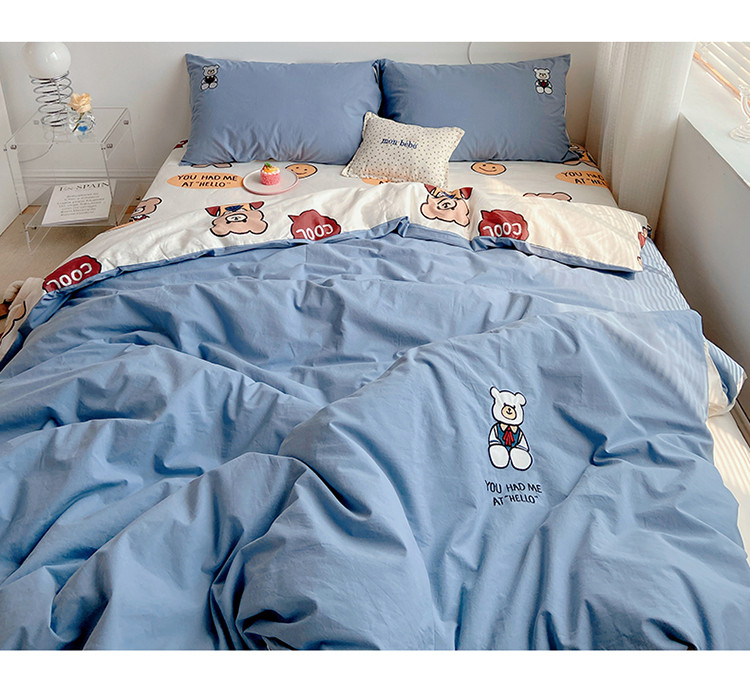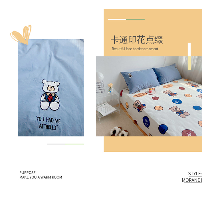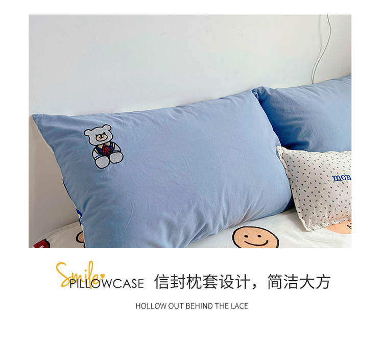 雅居纺家纺 2022新款全棉水洗棉绣花四件套 微笑熊