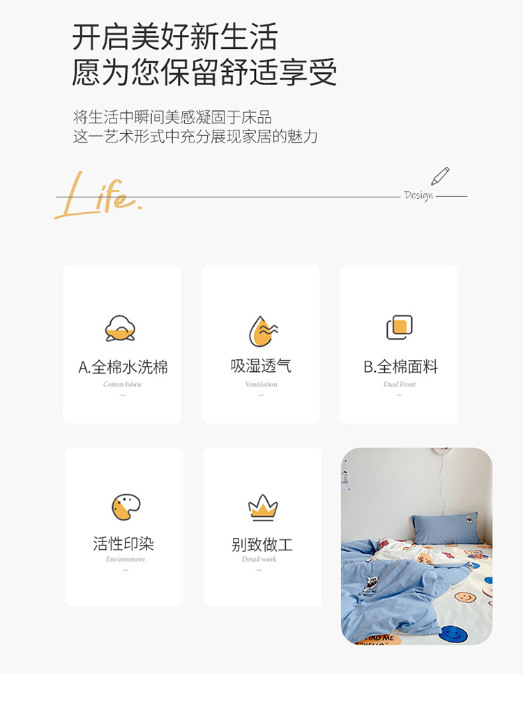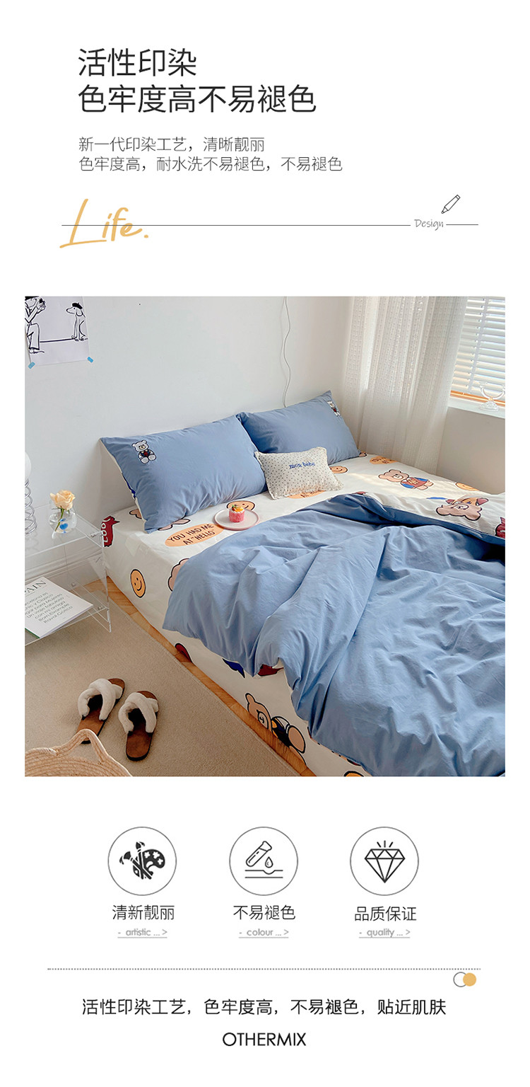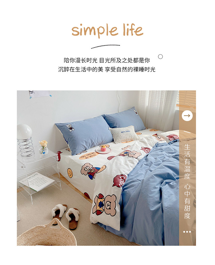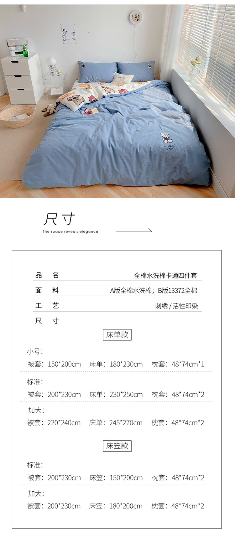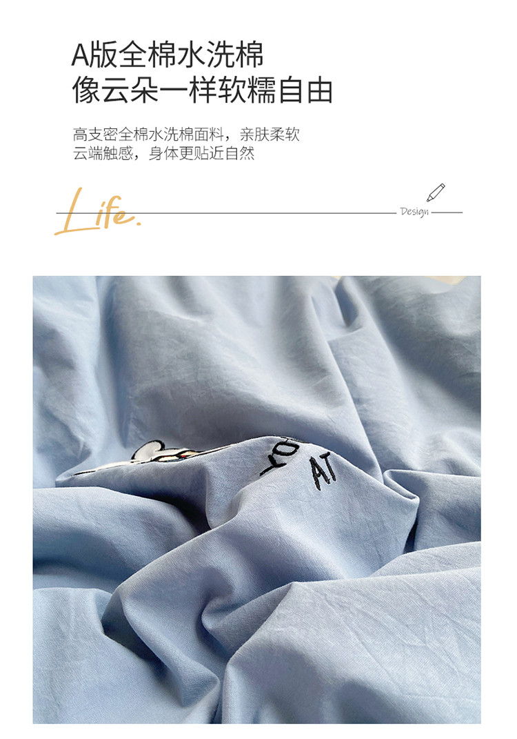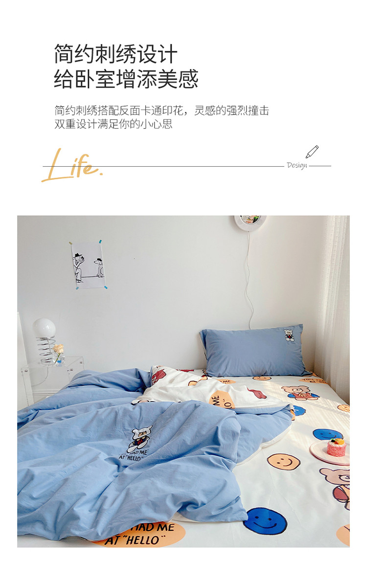 商品名称:雅居纺家纺 2022新款全棉水洗棉绣花四件套 微笑熊