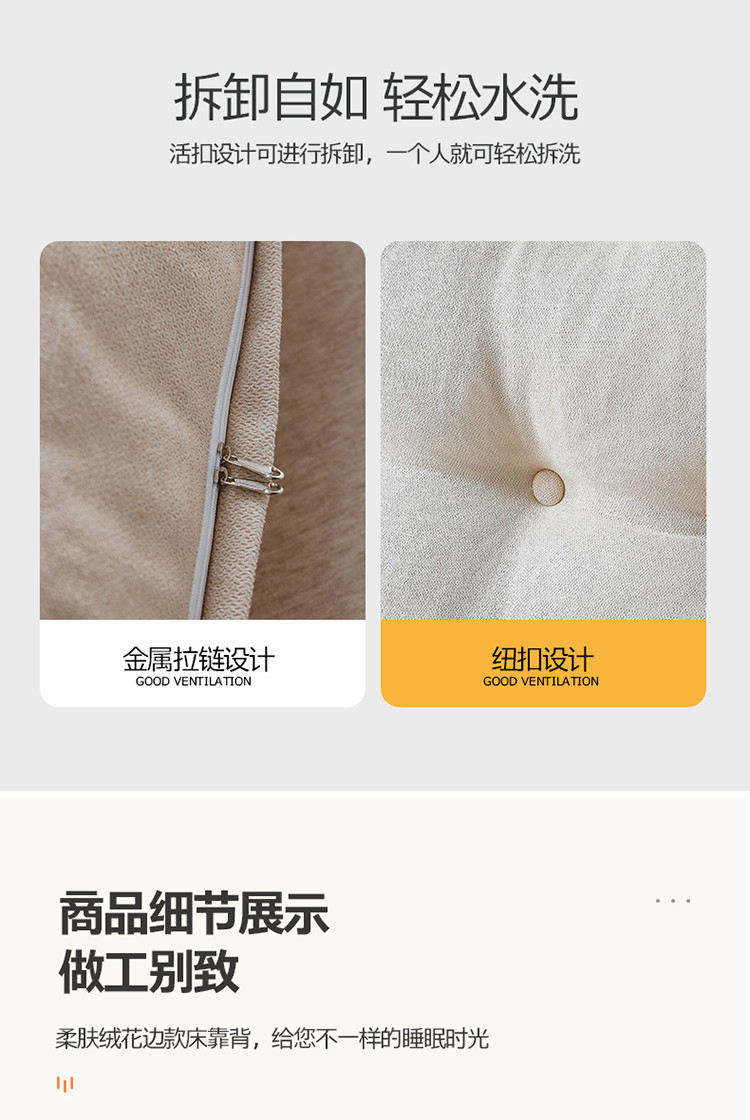 (总)一兰家纺 韩国绒床头靠垫可拆洗床上大靠枕双人床头软包