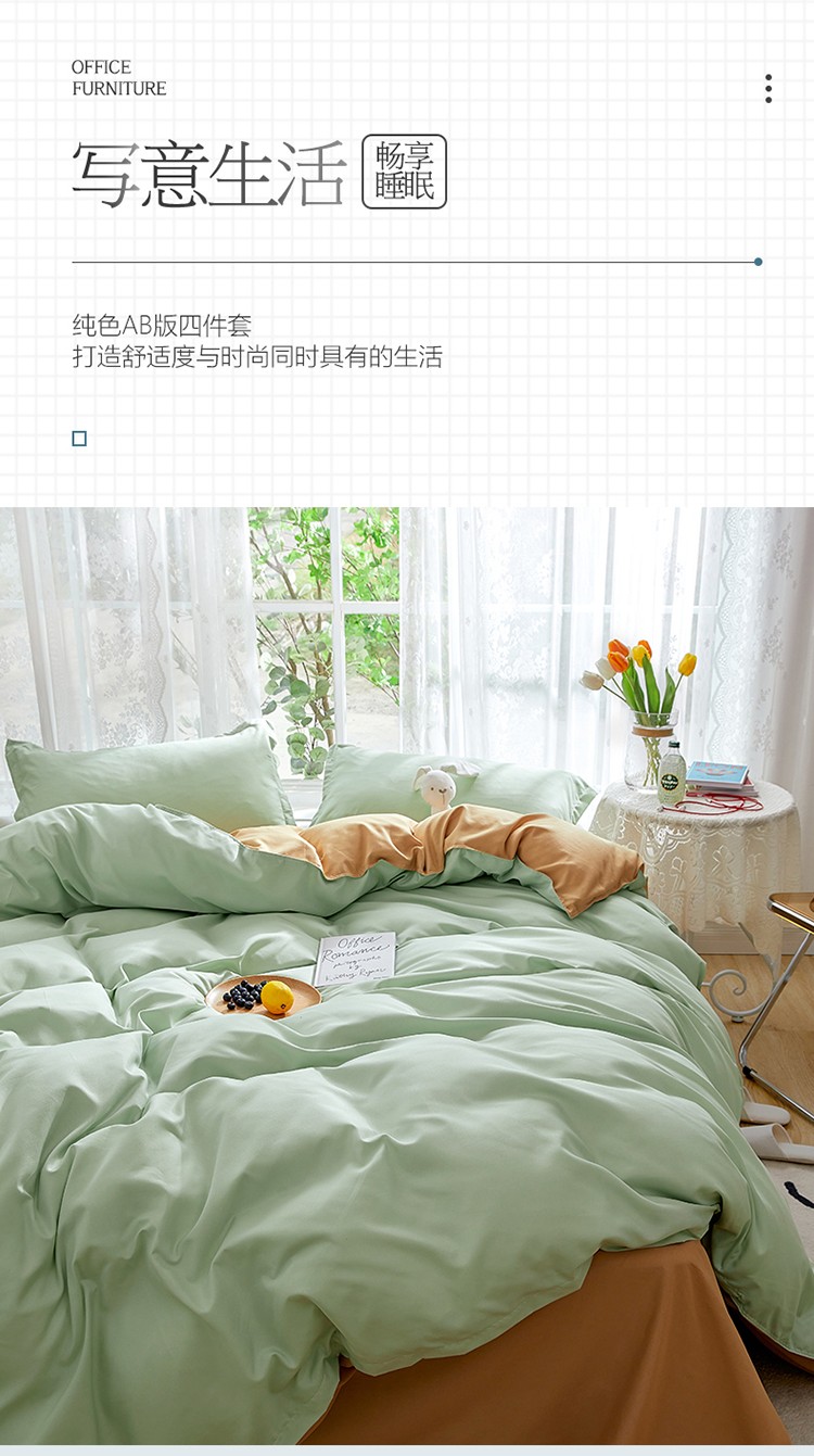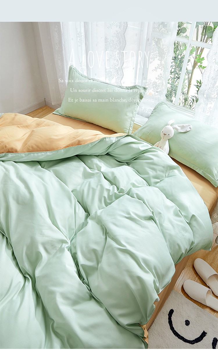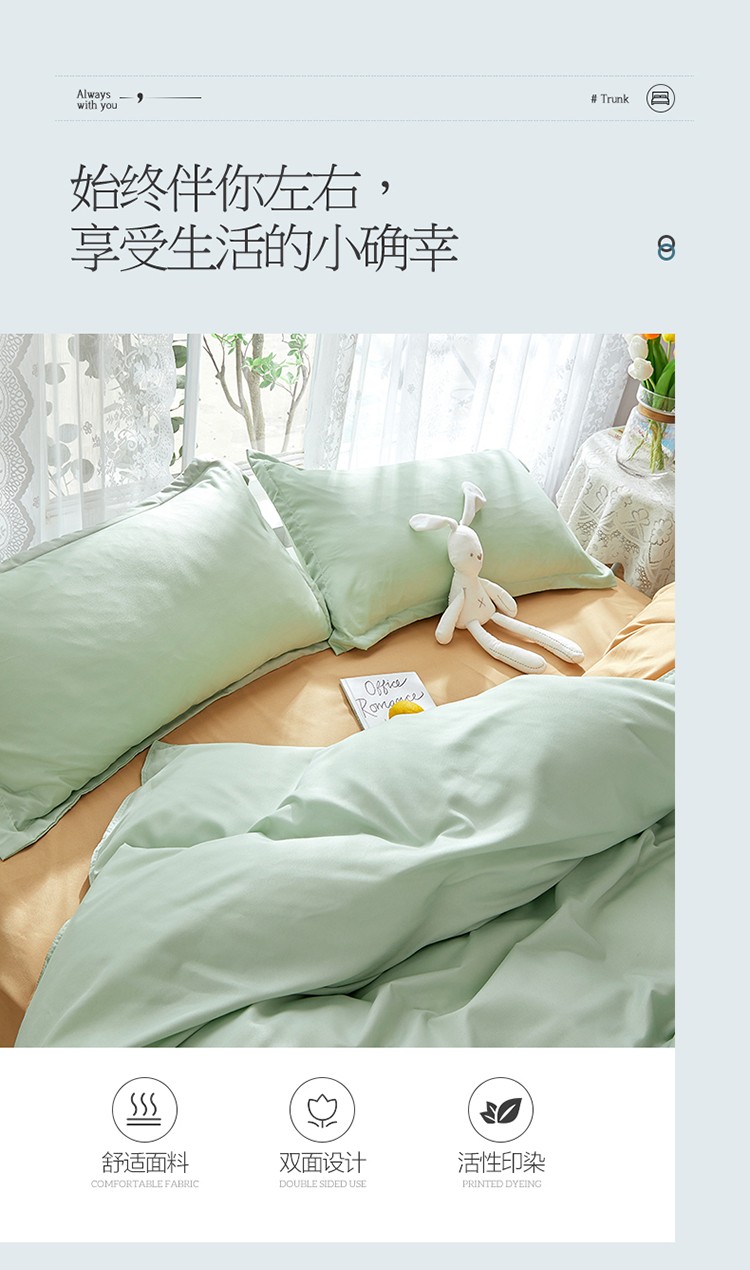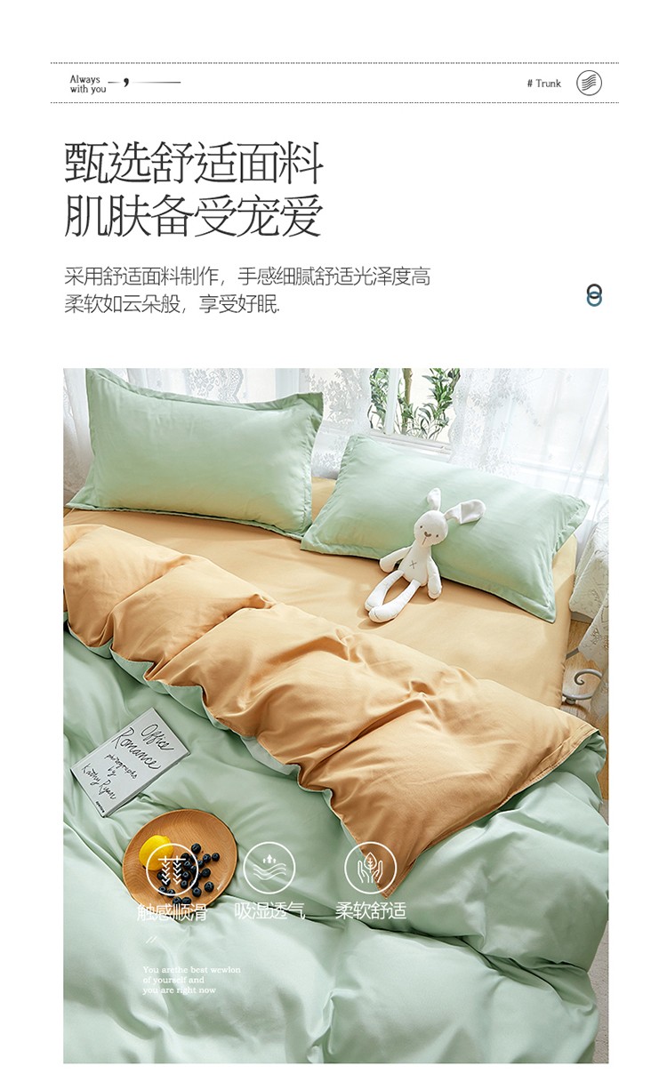 (总)贝拉梦家纺 2025新款纯色磨毛双拼亲肤棉四件套,暗黑骑士,半熟青柠,蓝色星河,奶油香草,乌梅子酱