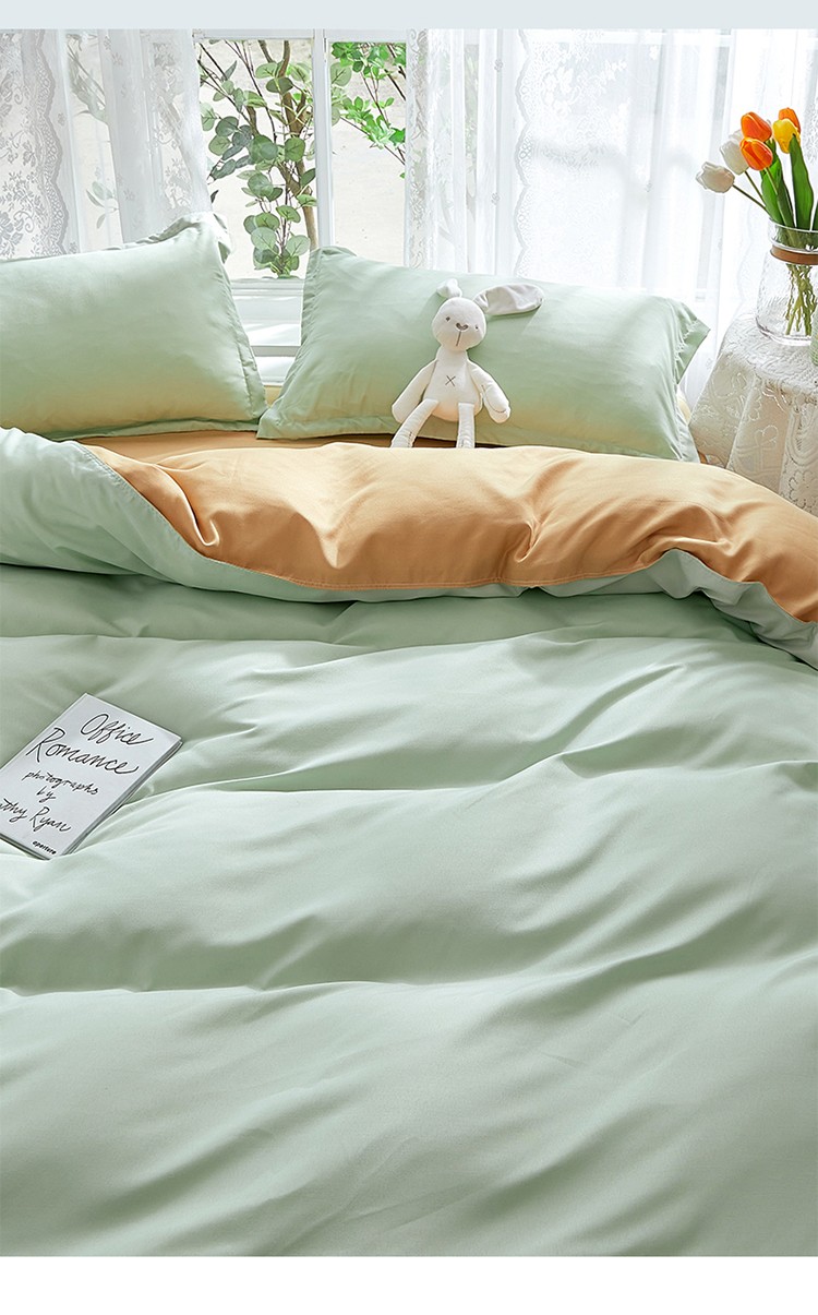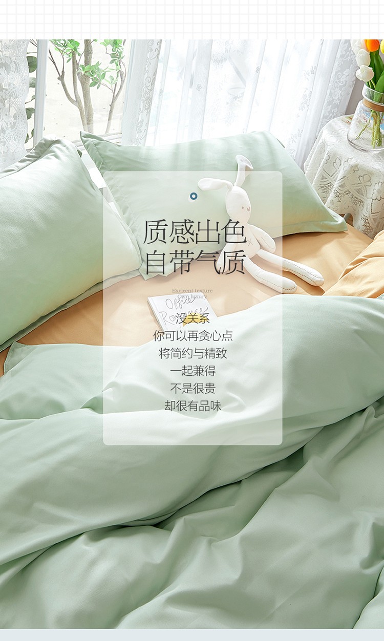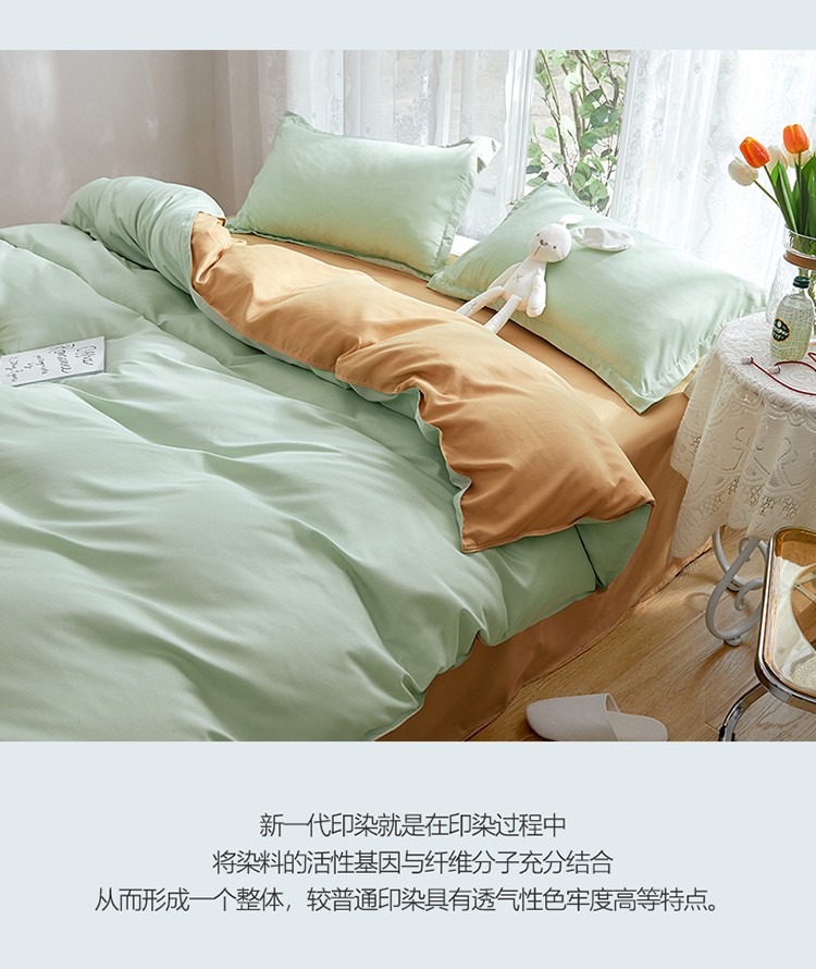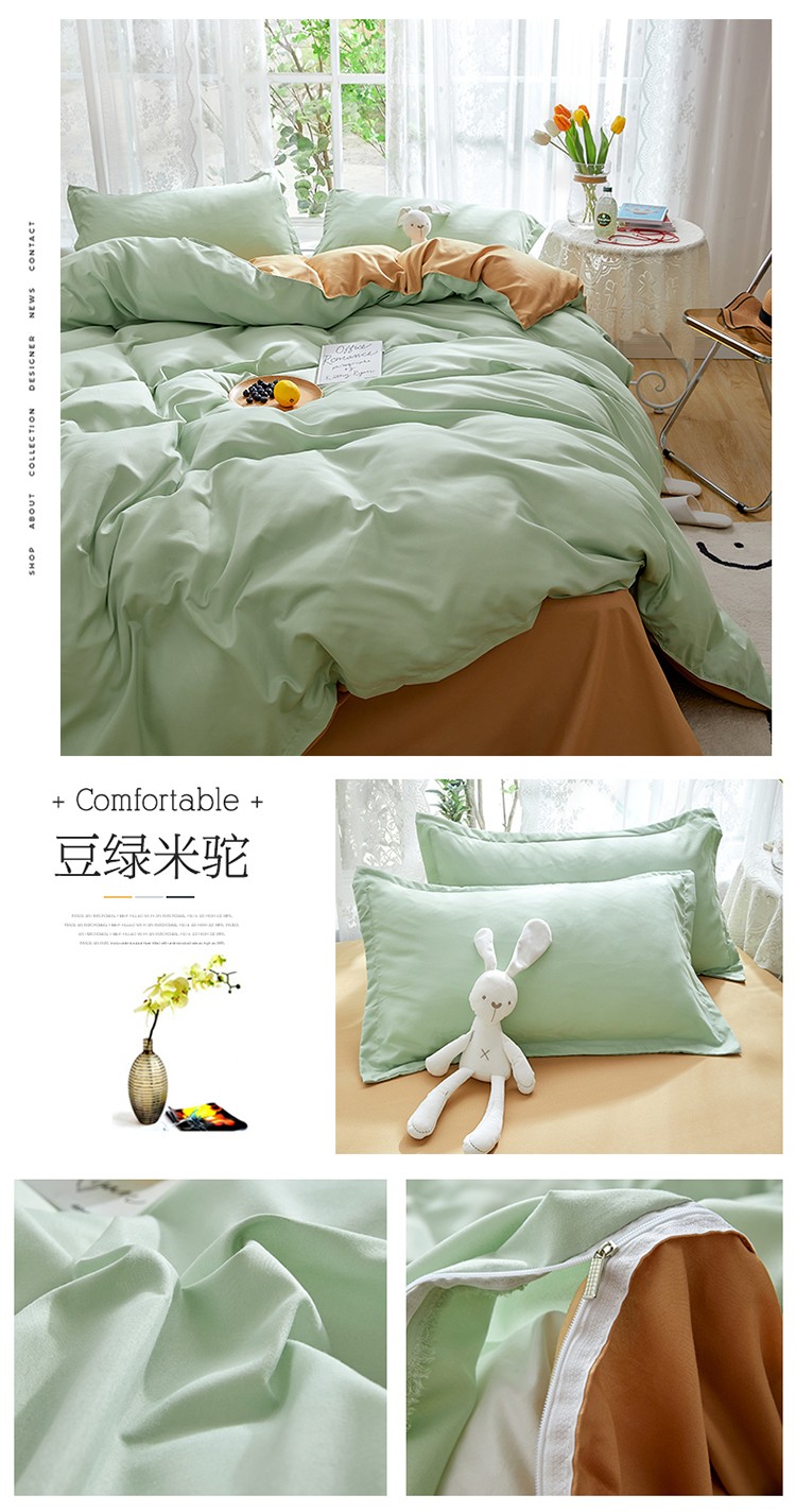 商品名称:贝拉梦 2021新款纯色拼色美棉系列四件套 豆绿米驼