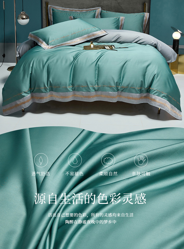 商品名称:爱缦 2021新款星空系列100支长绒棉奥棉四件套 韩黛绿