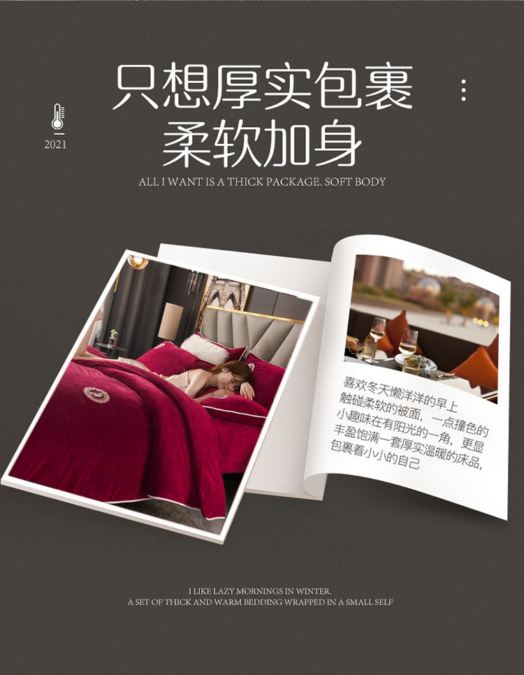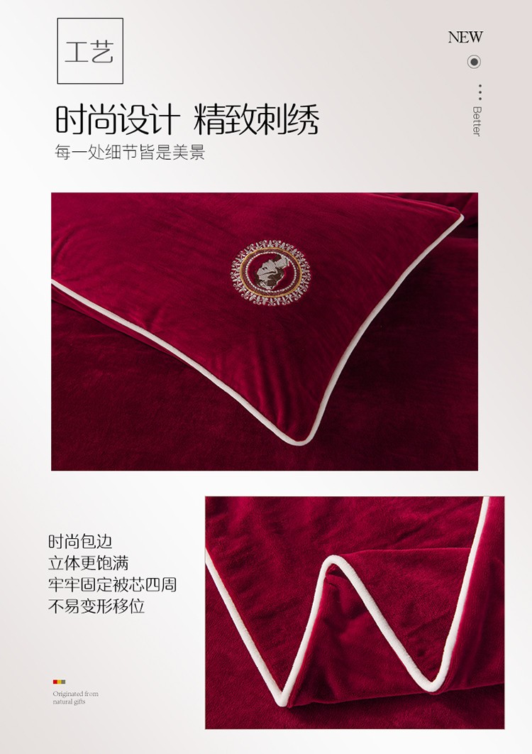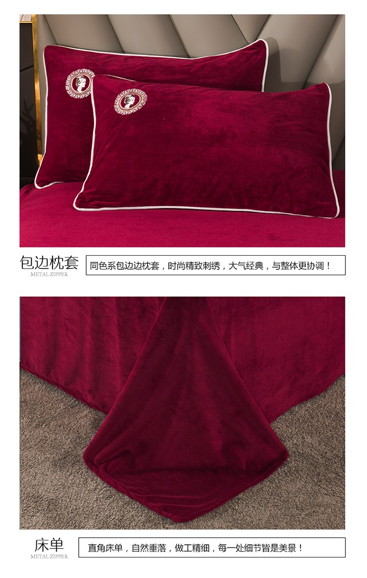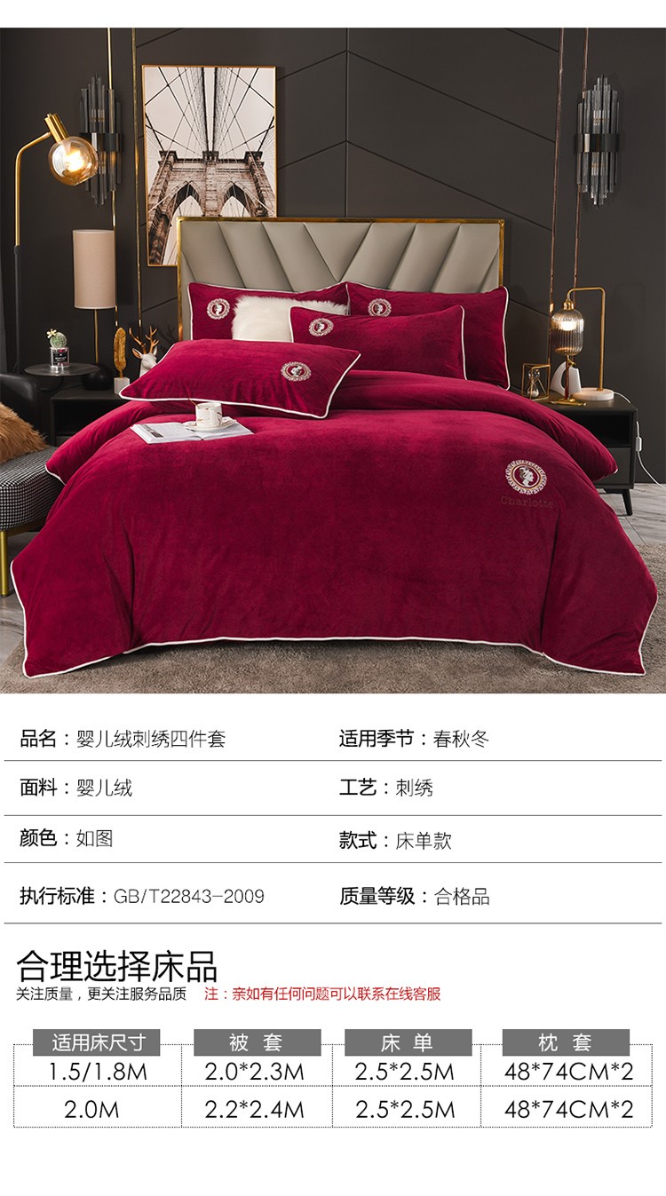 商品名称:迷仙巢 2021新款婴儿绒系列四件套倾城 倾城-酒红