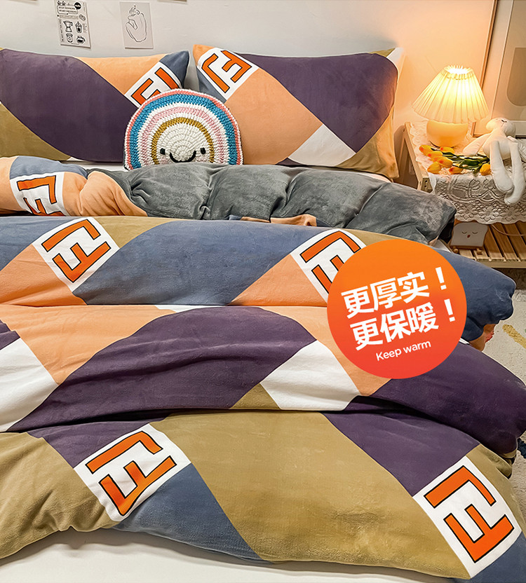 芃成家纺 2021新款牛奶绒印花单被套 潮格