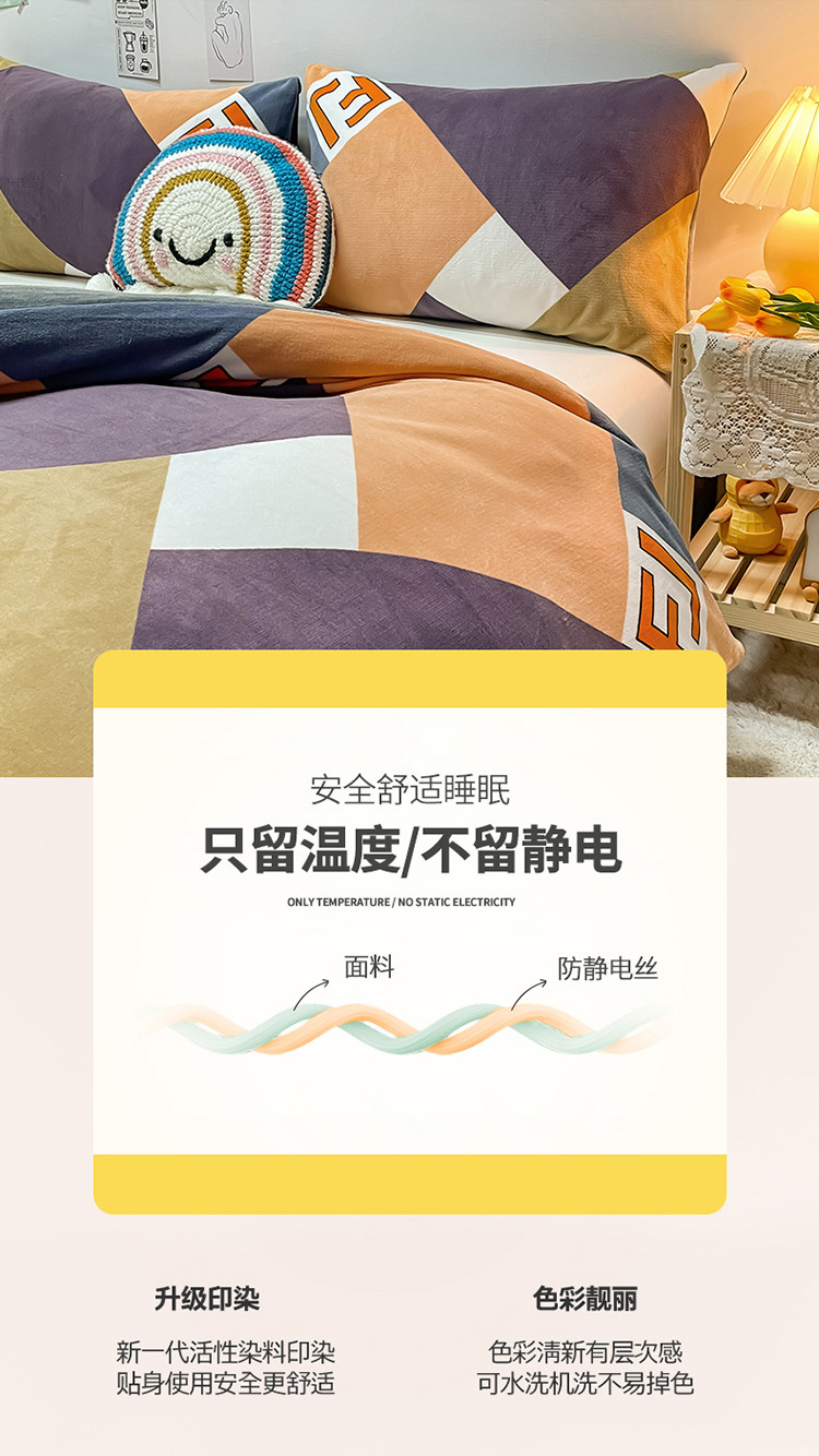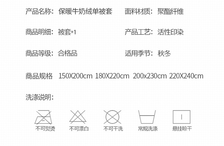 商品名称:芃成家纺 2021新款牛奶绒印花单被套 潮格