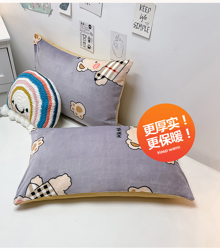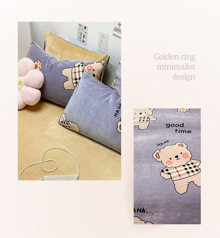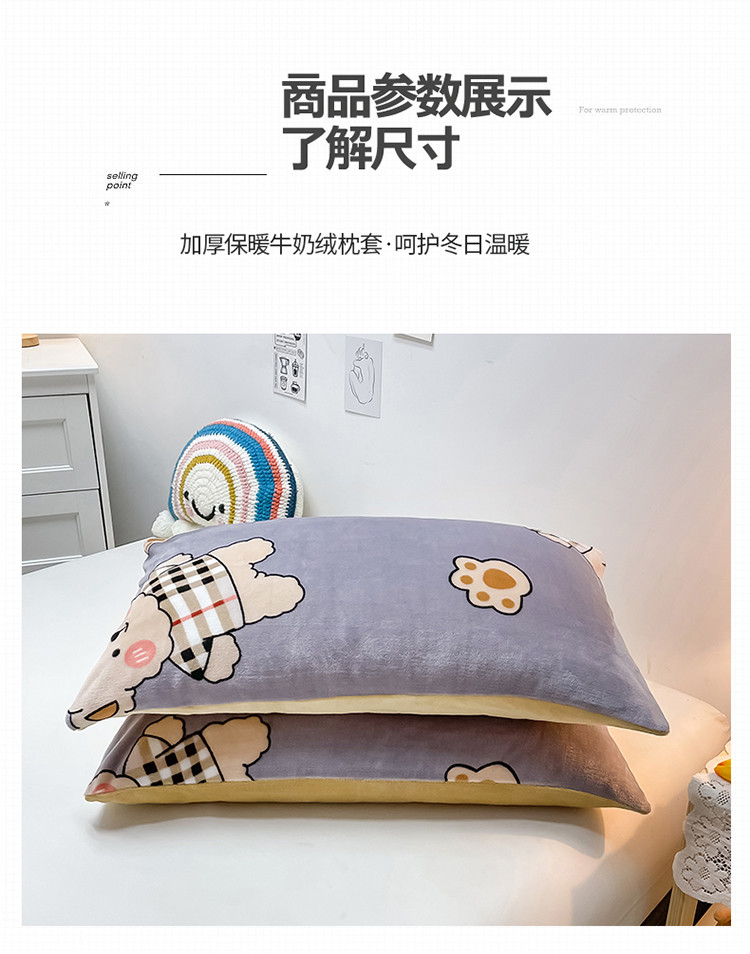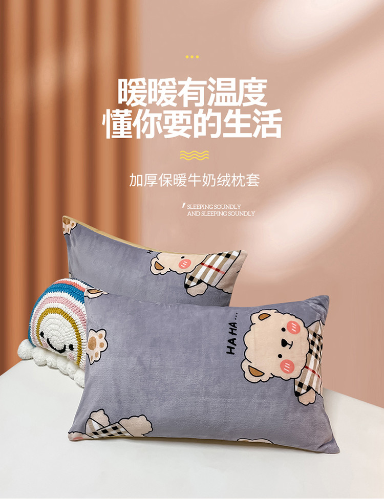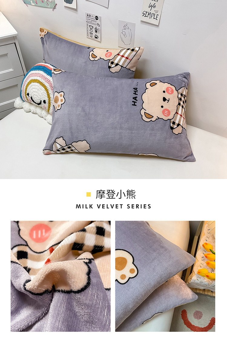 • 91家纺网 家纺一手货源 找家纺 芃成家纺 2021新款牛奶绒印花单枕套一对 摩登小熊