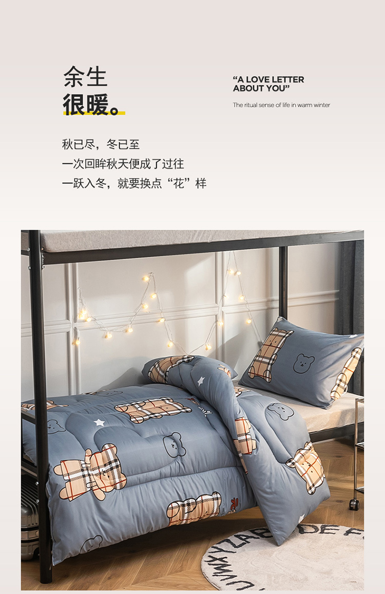 当前位置: 91家纺网 > 商品网购 > 被子 > 冬被 > 畅销被业 2024新款芦荟棉学生床冬被 元气小熊