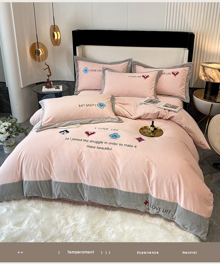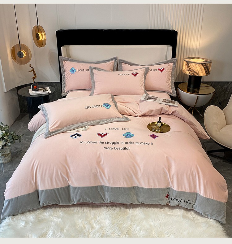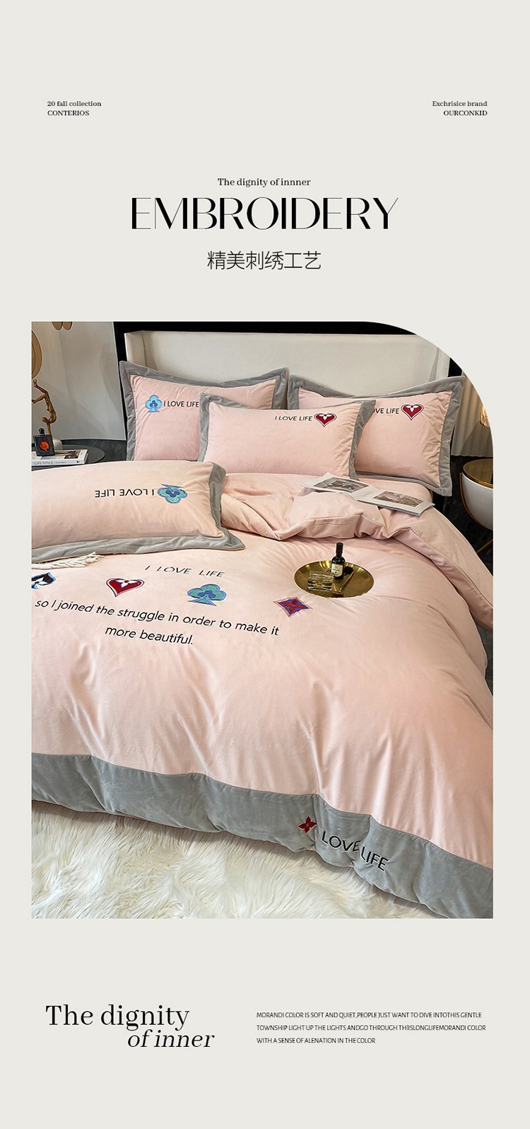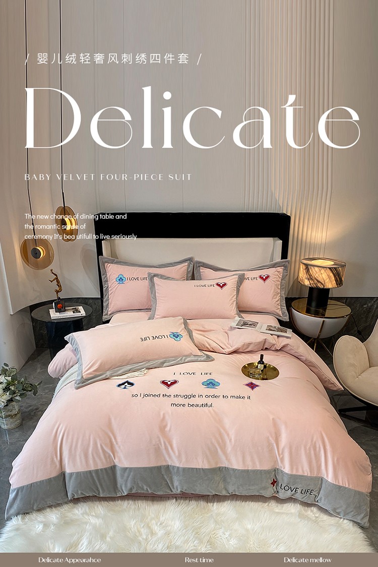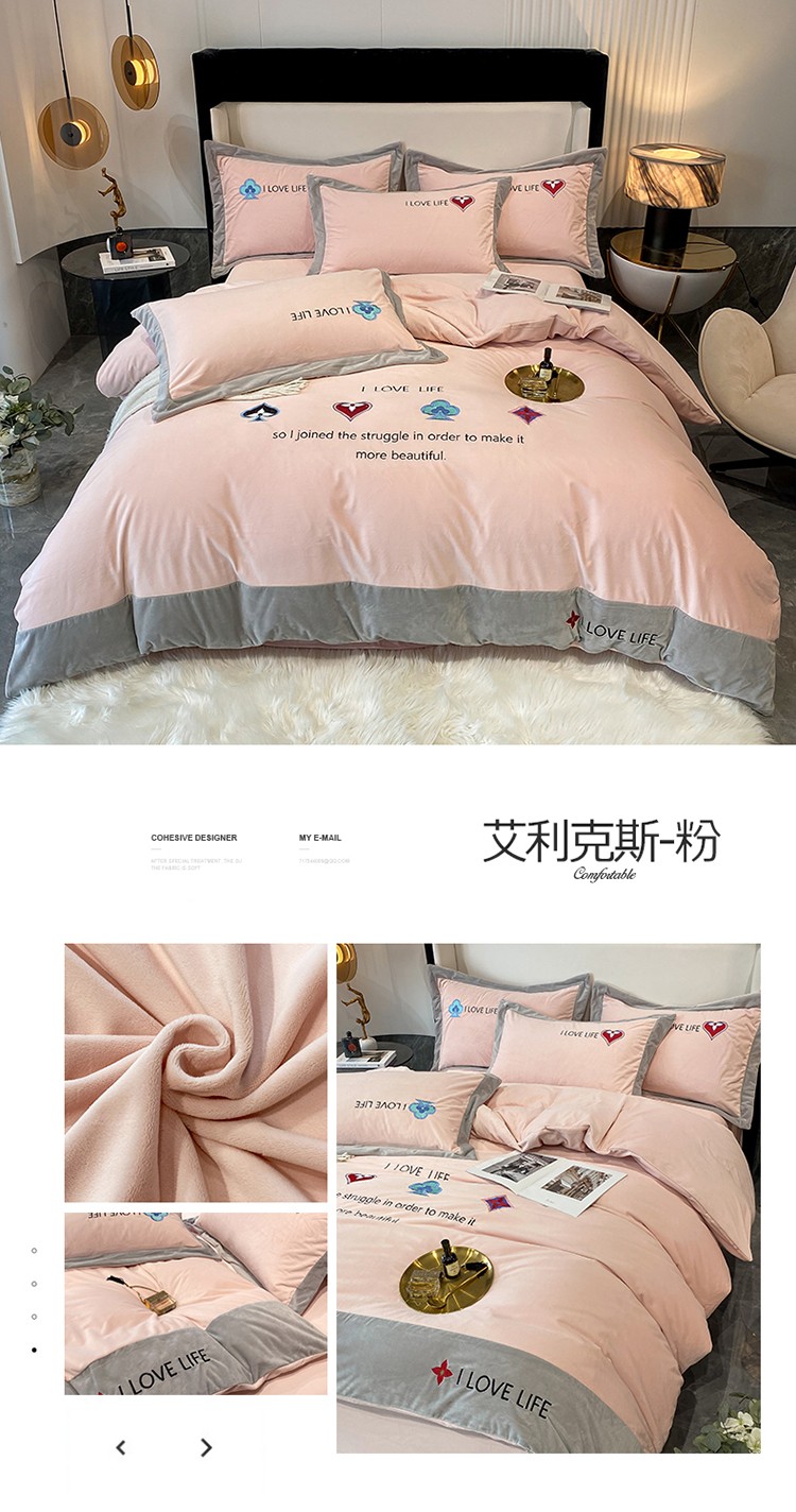 澳梵 2021【艾利克斯】婴儿绒轻奢风刺绣四件套 艾利克斯-粉
