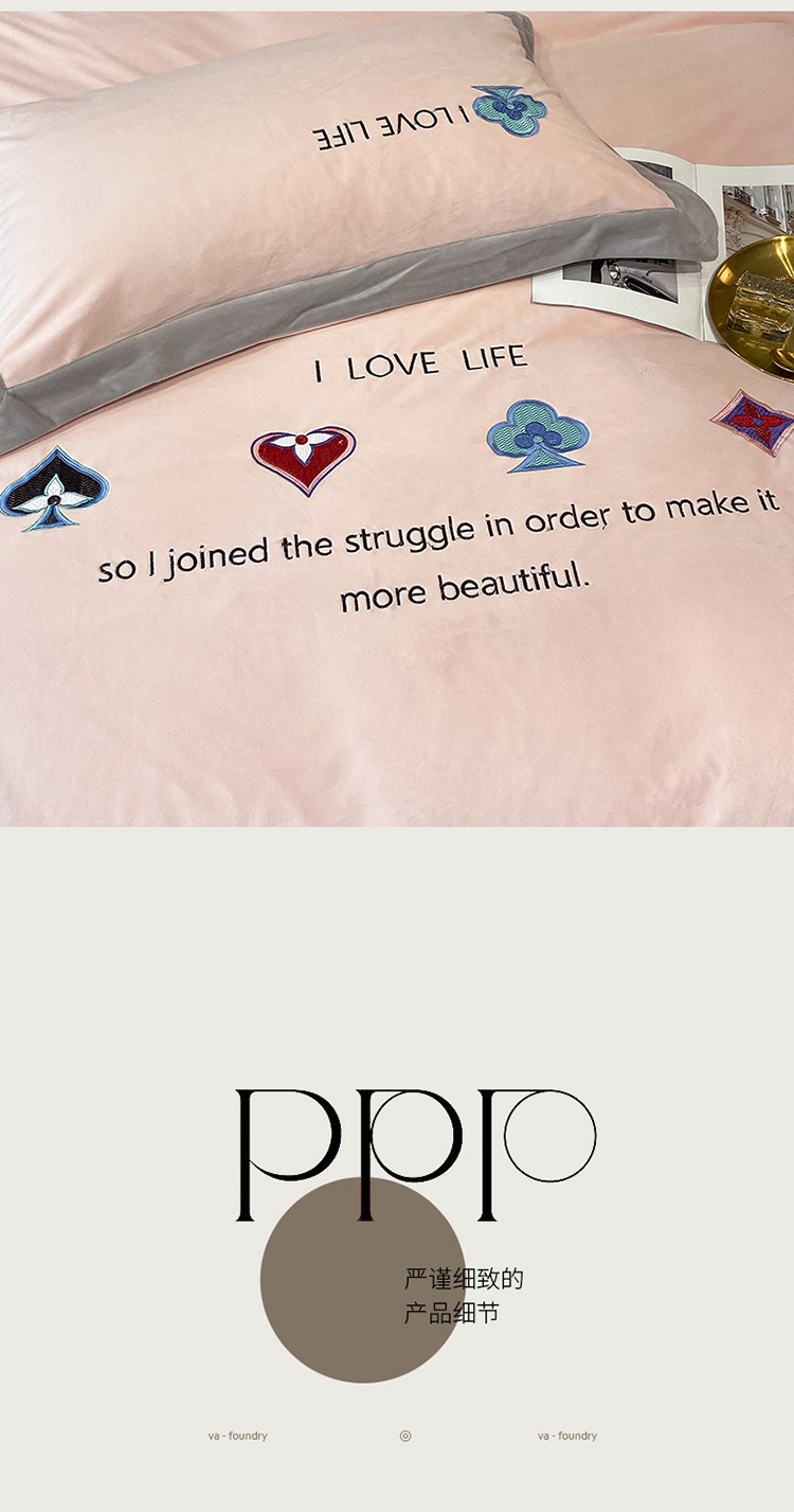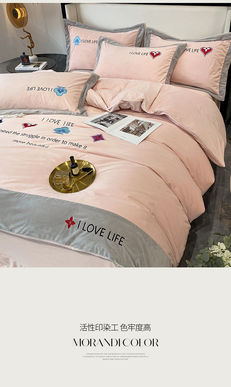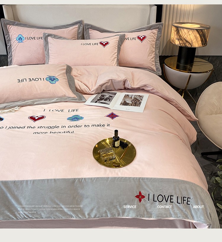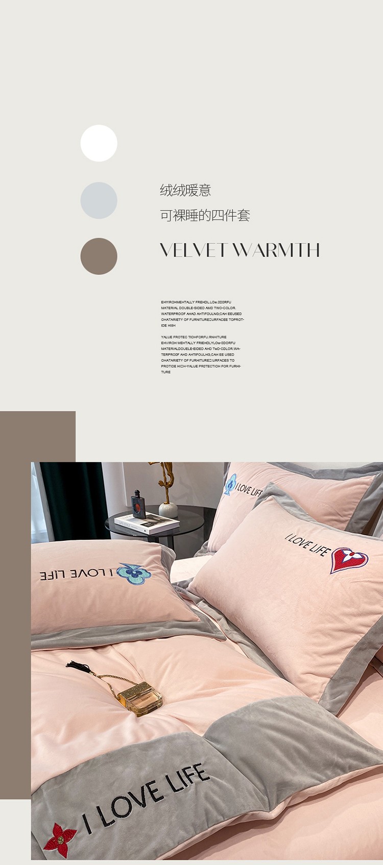 澳梵 2021【艾利克斯】婴儿绒轻奢风刺绣四件套 艾利克斯-粉
