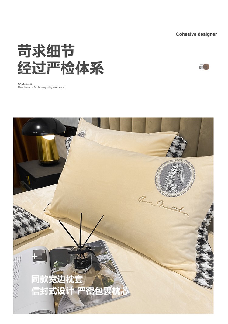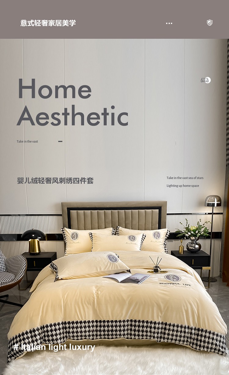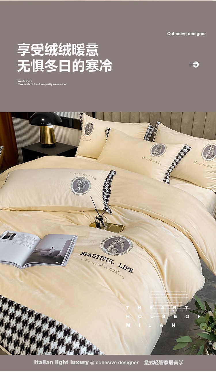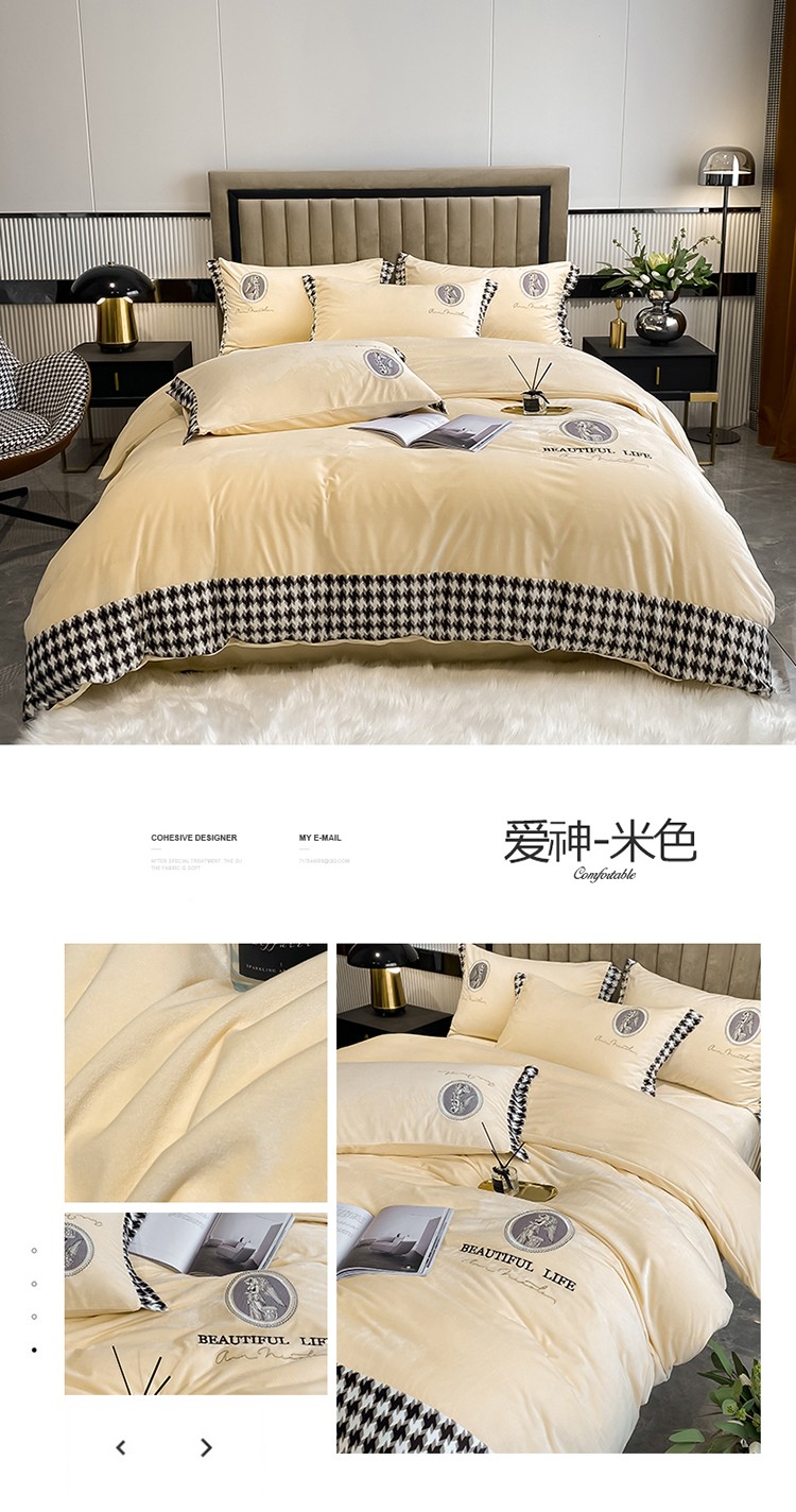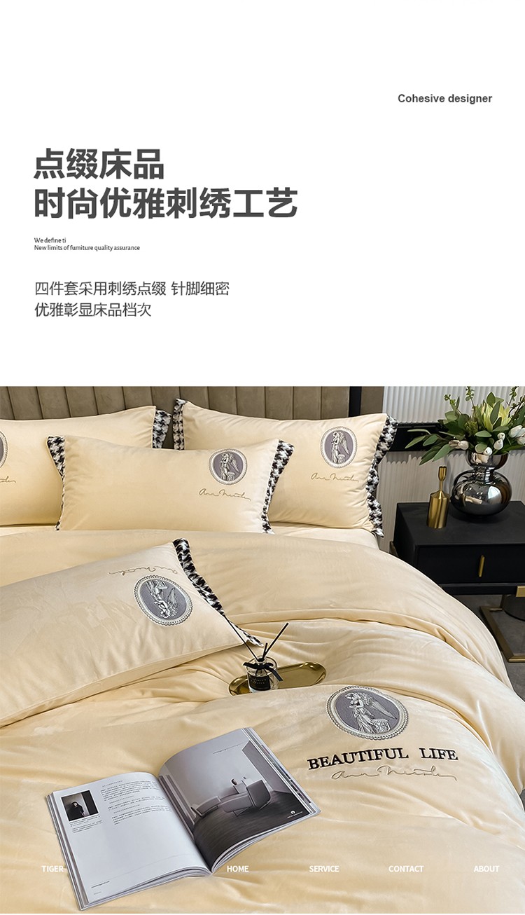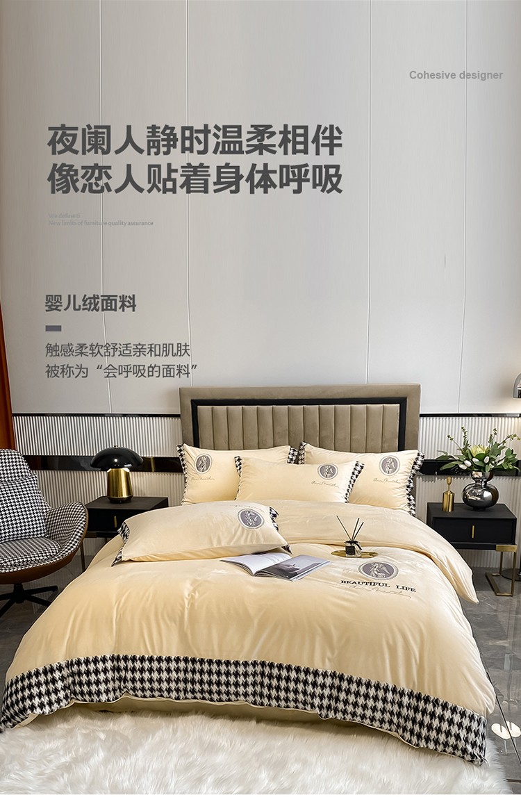 澳梵 2021【爱神系列】婴儿绒轻奢风刺绣四件套 爱神-米色