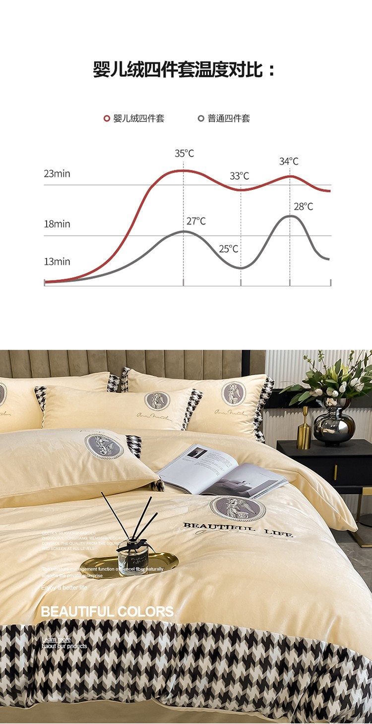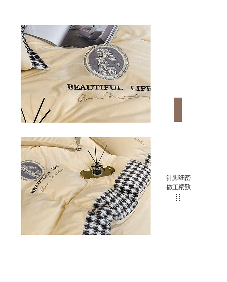 商品名称:澳梵 2021【爱神系列】婴儿绒轻奢风刺绣四件套 爱神-米色