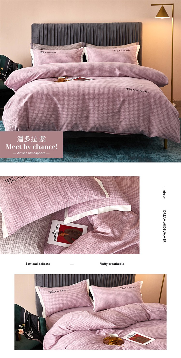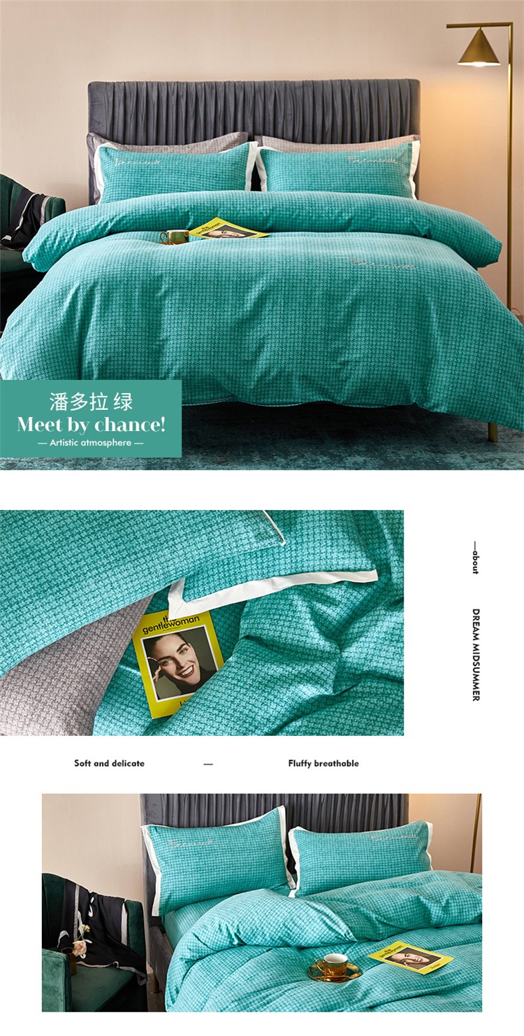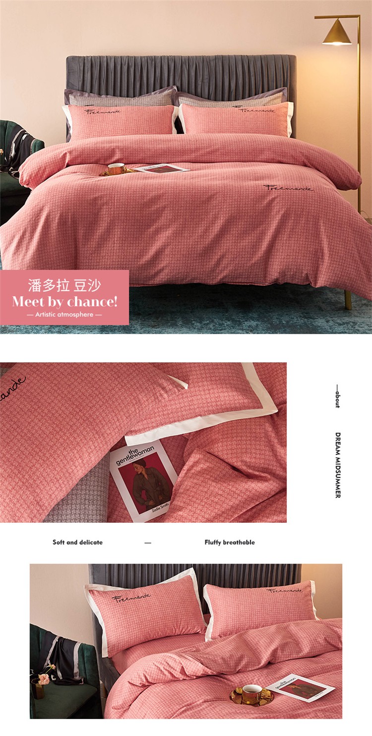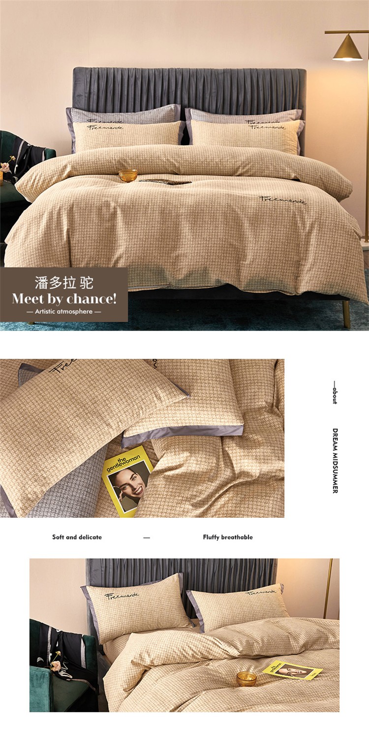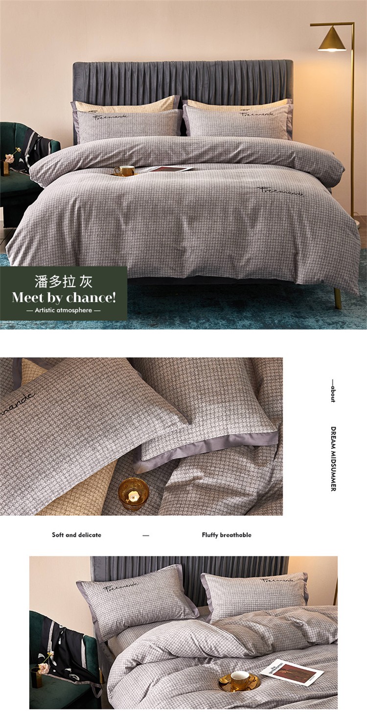 (总)凡客2021秋冬新款全棉磨毛刺绣四件套学生宿舍三件套-潘多拉