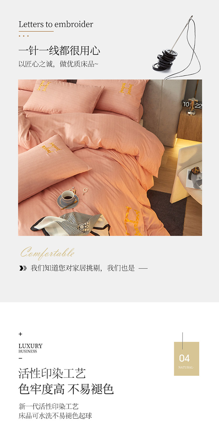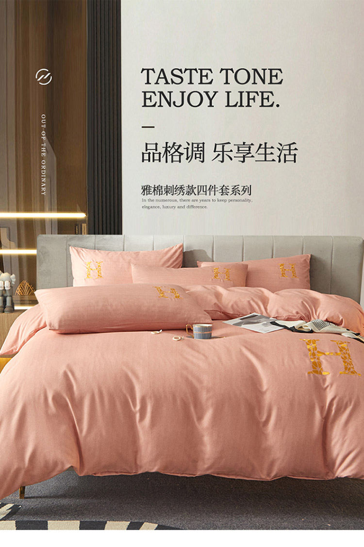 凡客2021秋冬新款雅棉刺绣四件套-索菲亚 索菲亚-粉