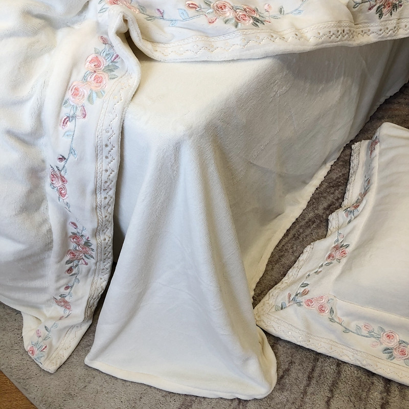 (总)馨蕊家居 2025新款意大利进口高精密刺绣拼角工艺秋冬法式高奢雪貂绒系列-绒雪芙 会员-10【券后控价358/378】,绒雪芙-奶咖,绒雪芙-蔷薇粉,绒雪芙-婉若紫,绒雪芙-月光白