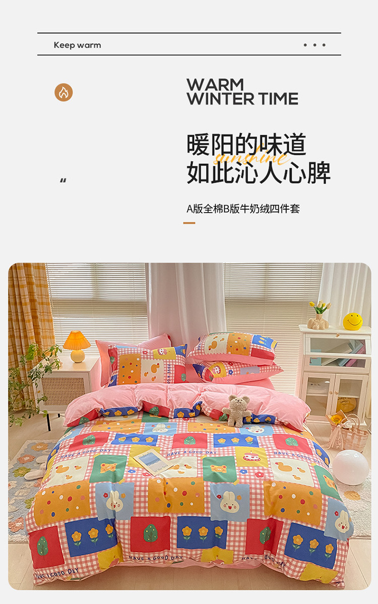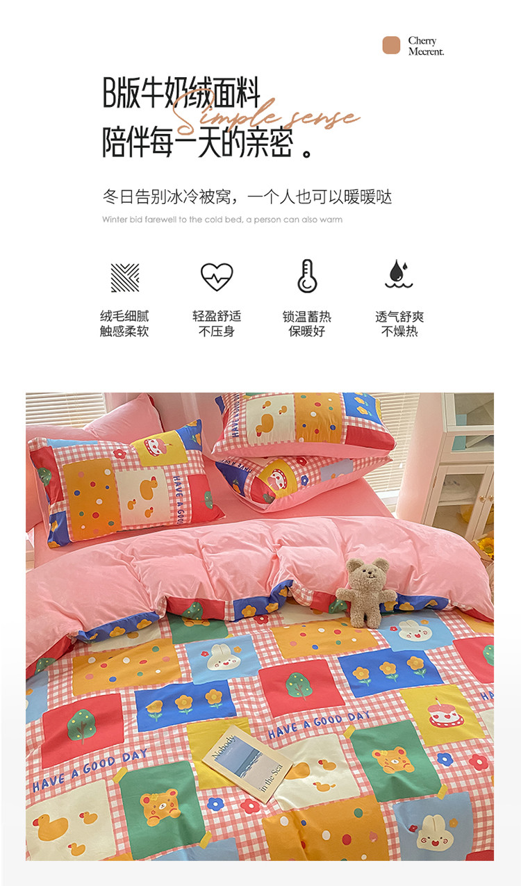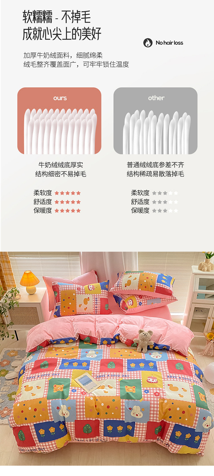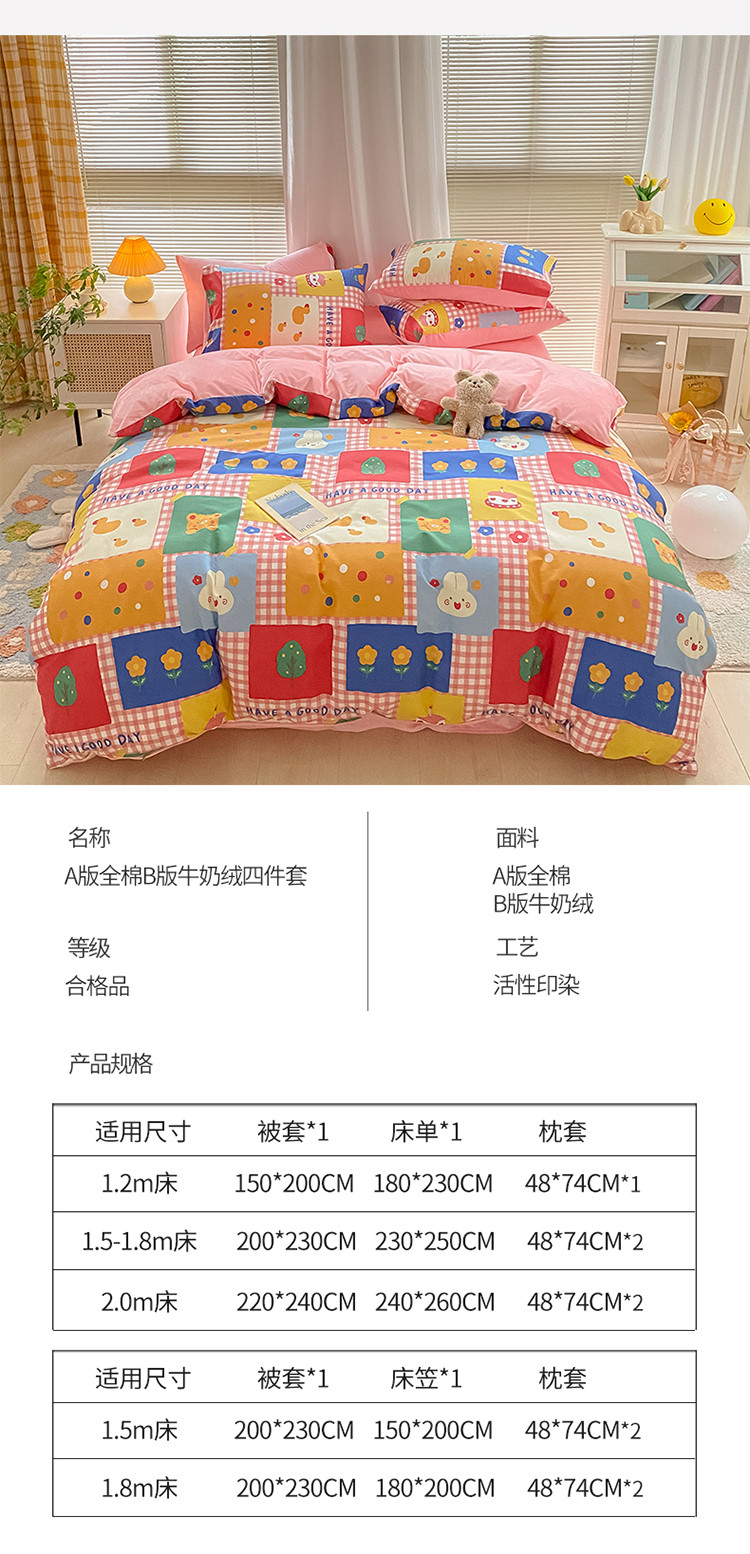 (总)雅居纺家纺 2025新款高克重牛奶绒印花四件套,M粉,爱心恐龙,粉粉桃,粉色竖条,乖乖兔,蝴蝶结-粉,蝴蝶结-蓝,幻境-粉,简约绿条,经典豹纹,咖色竖条,开心龙,蓝墨花朵,蓝色竖条,蓝色小兔,蓝条猫咪,浪漫花香,秘境小兔,时尚爱心,树叶小兔子,竖条小花,四宫格,仙草,小煤球,幸运兔,休闲小兔,宇航熊