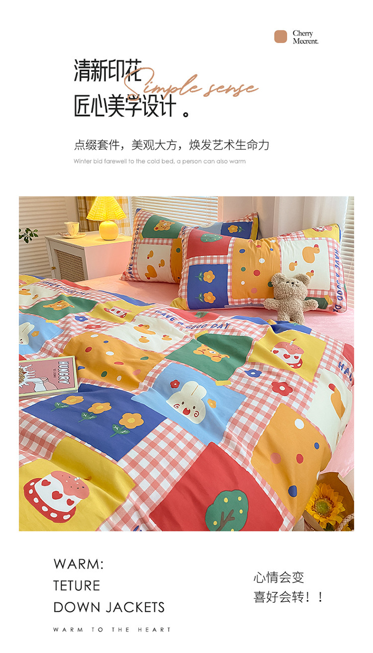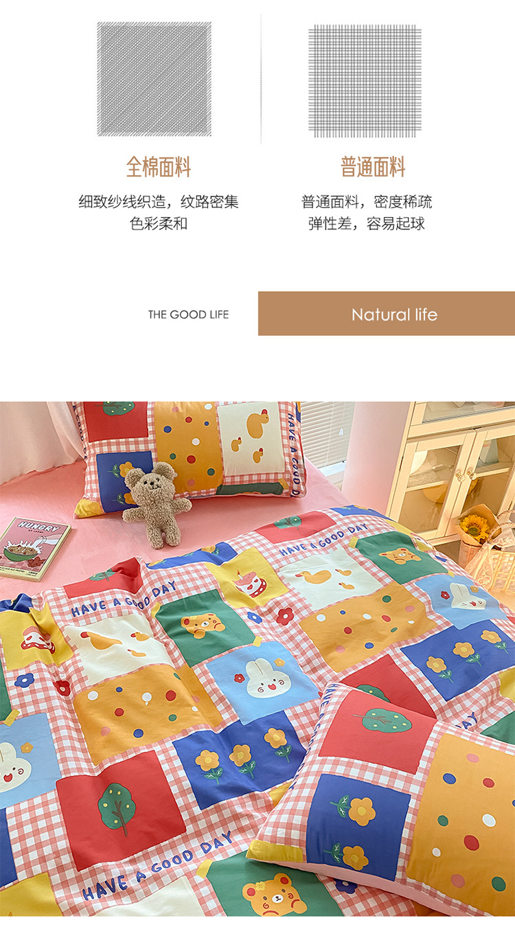 (总)雅居纺家纺 2022新款13070全棉印花四件套,草莓蝴蝶结,俄罗斯方块,黑白蝴蝶结,很嗨兔,可爱小兔,快乐花海,牛奶纹,胖胖鸭,棋盘格,日月争辉,西部恐龙,小情调,小桃桃