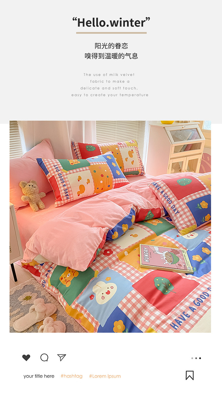 2022新款全棉+水晶绒四件套 蛋糕熊