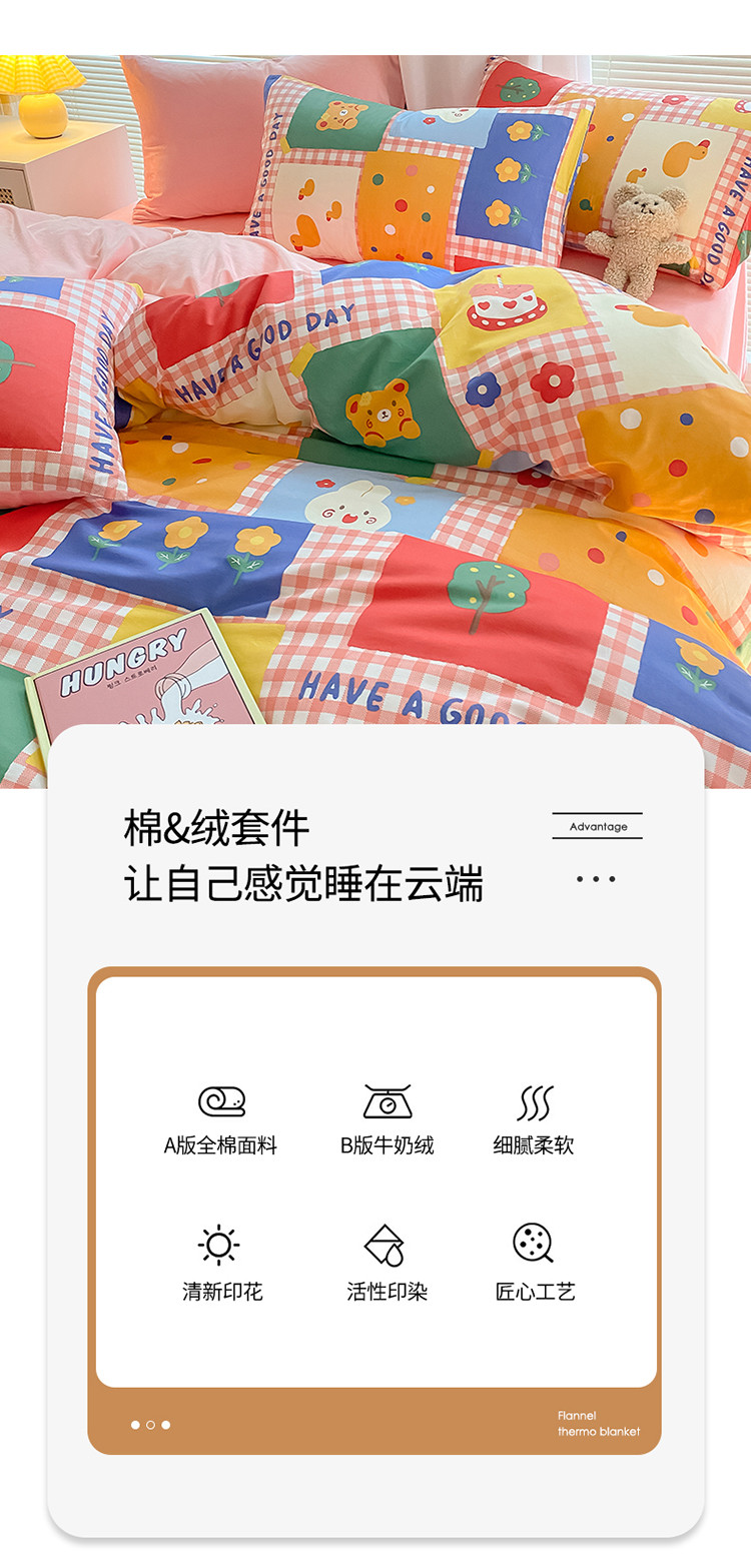 商品名称:2022新款全棉+水晶绒四件套 蛋糕熊