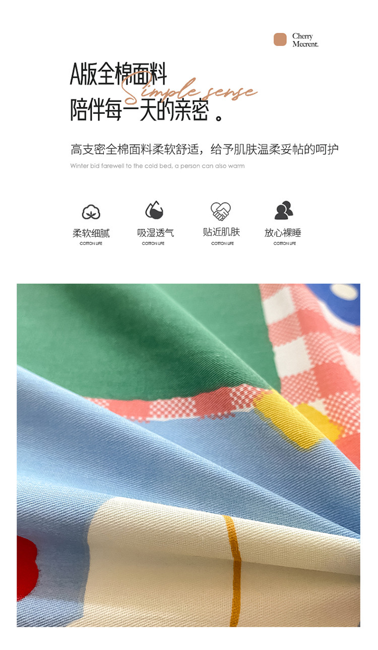 (总)雅居纺家纺 2022新款13070全棉印花四件套,波纹,多彩,简笔画,莓关系,奶油绿豹纹,倾心,数字