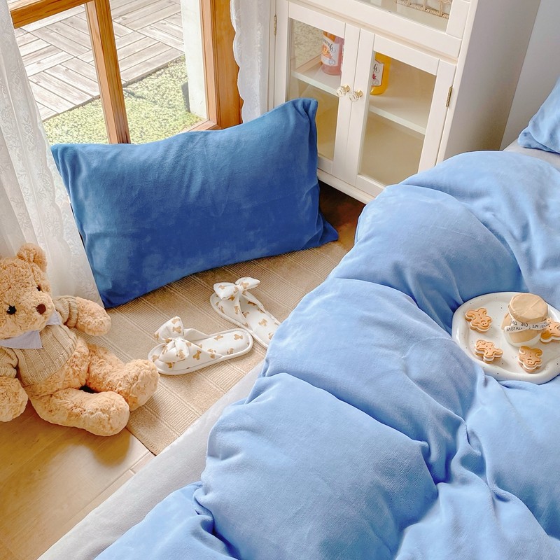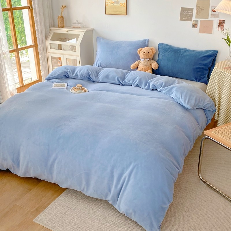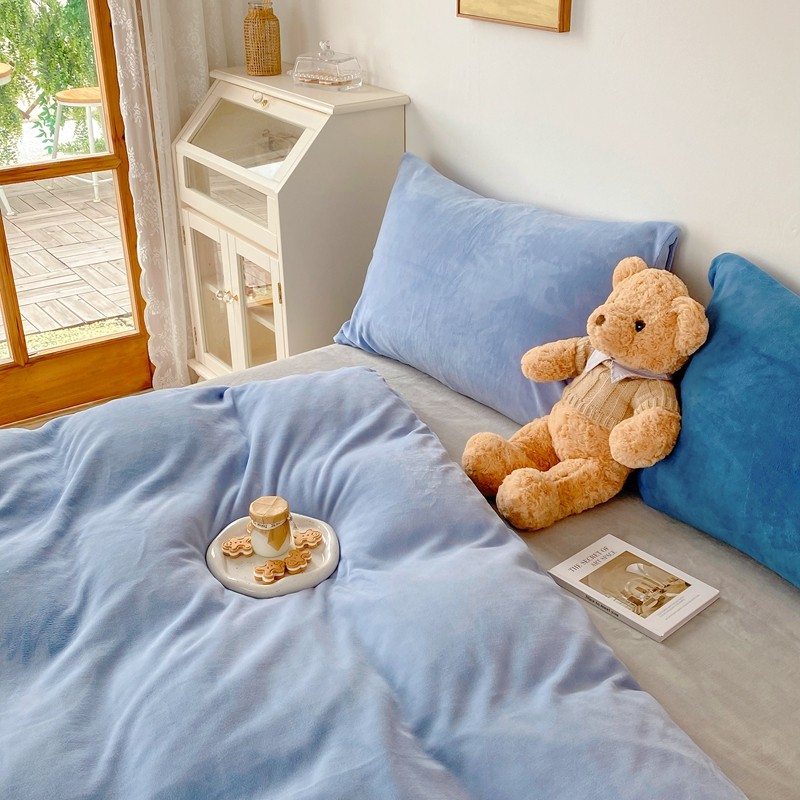 商品名称:星期八 2021新款马卡龙牛奶绒四件套 蓝-灰