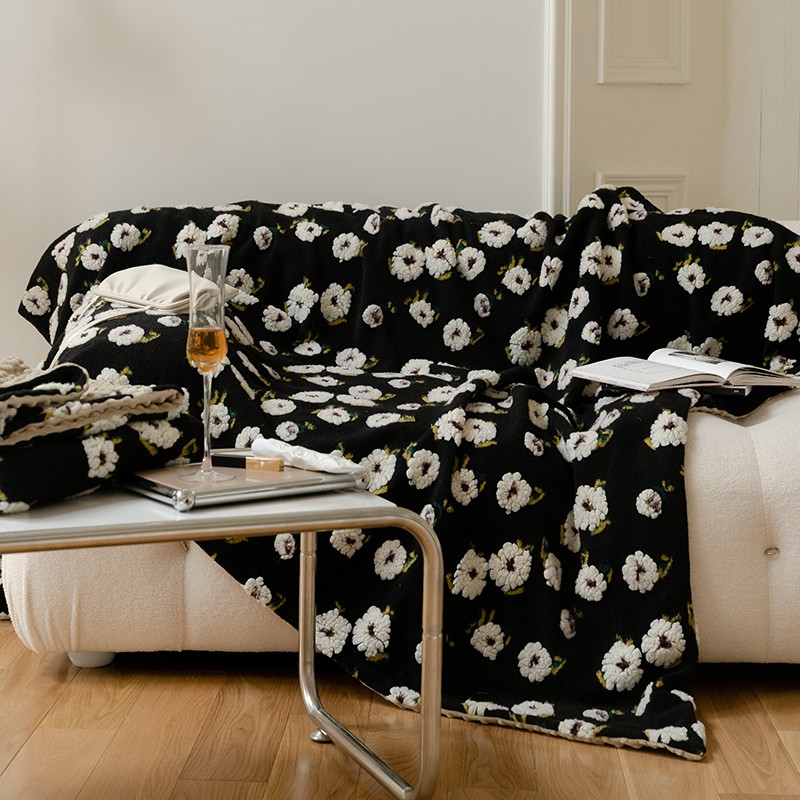 商品名称:(总)圆岛家纺 新款复古高克重羊毛绒混纺提花豆豆绒毛毯