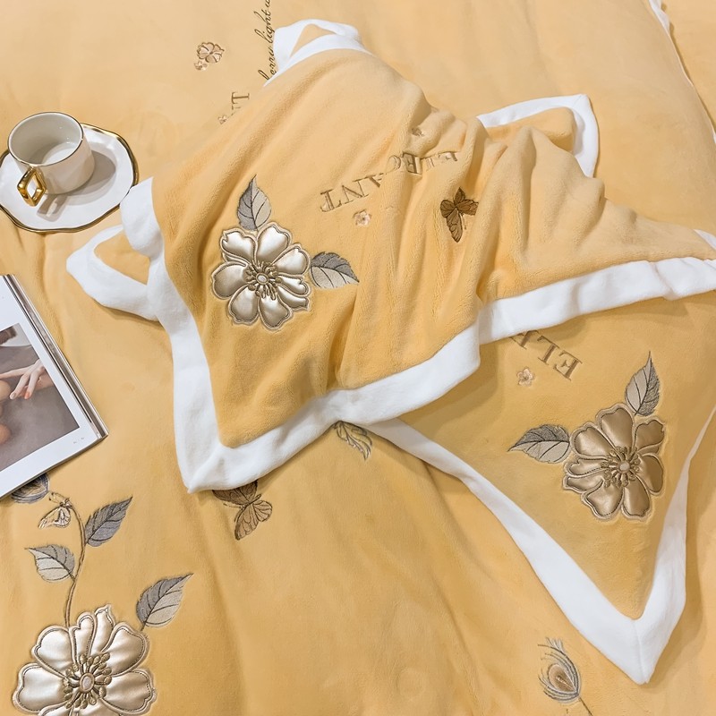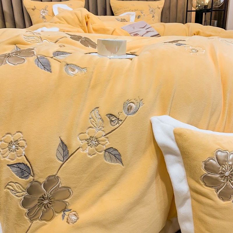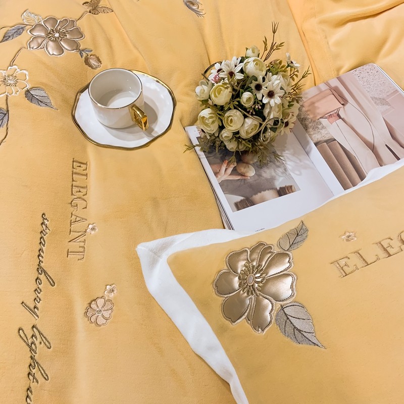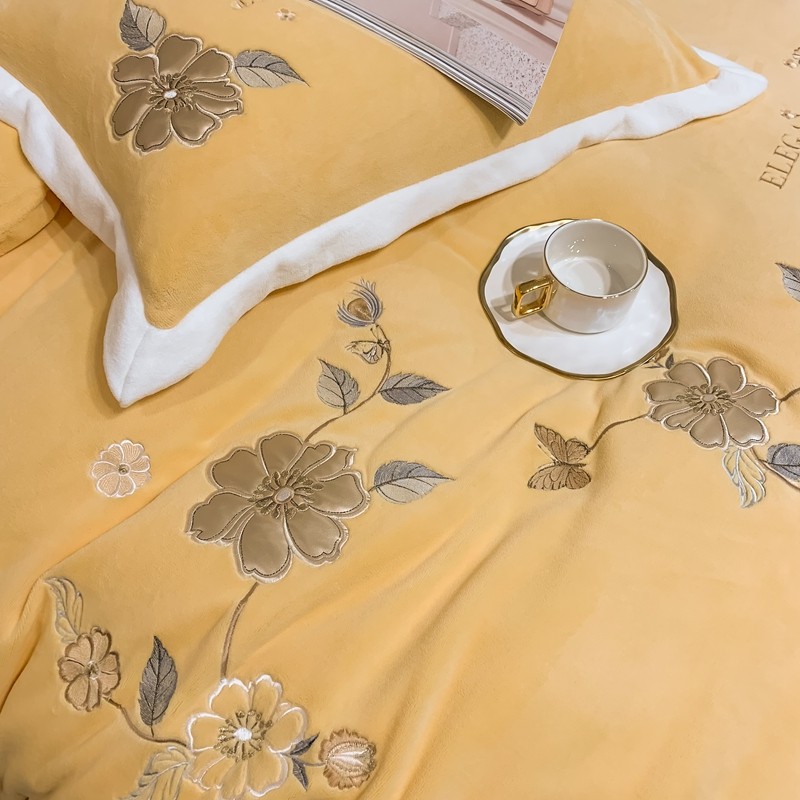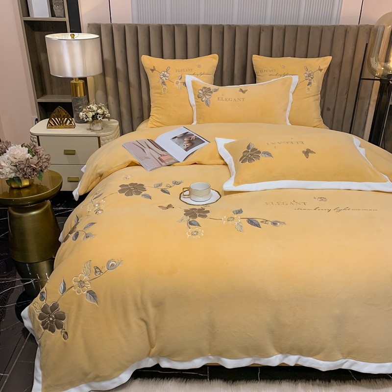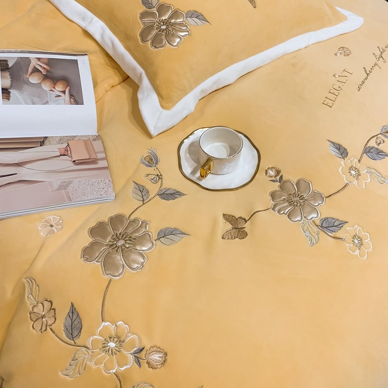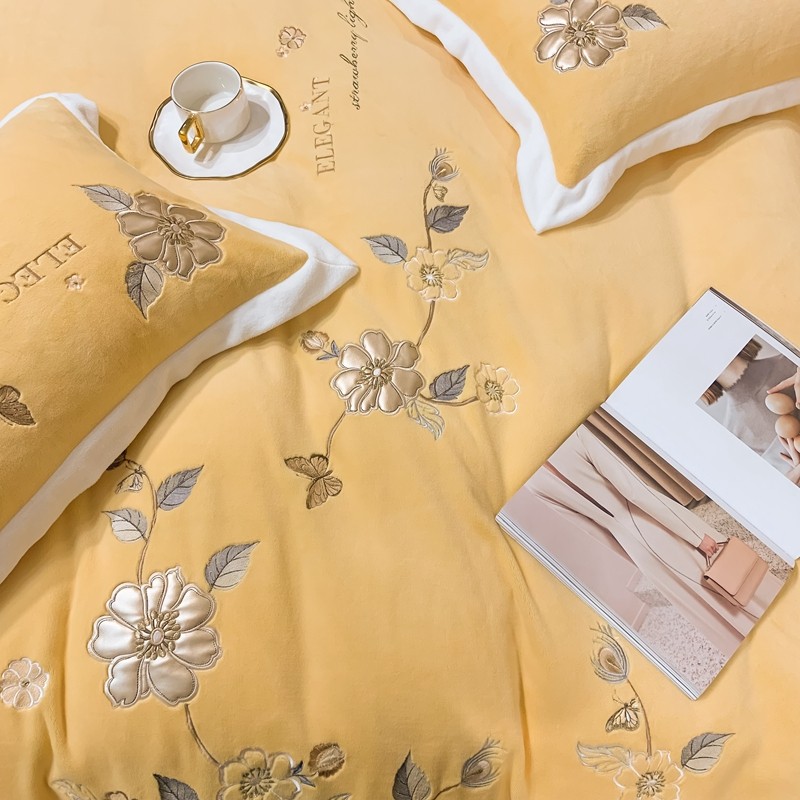 星尚 新款A类进口牛奶绒加厚水晶绒绣花四件套 罗曼蒂克-蛋黄