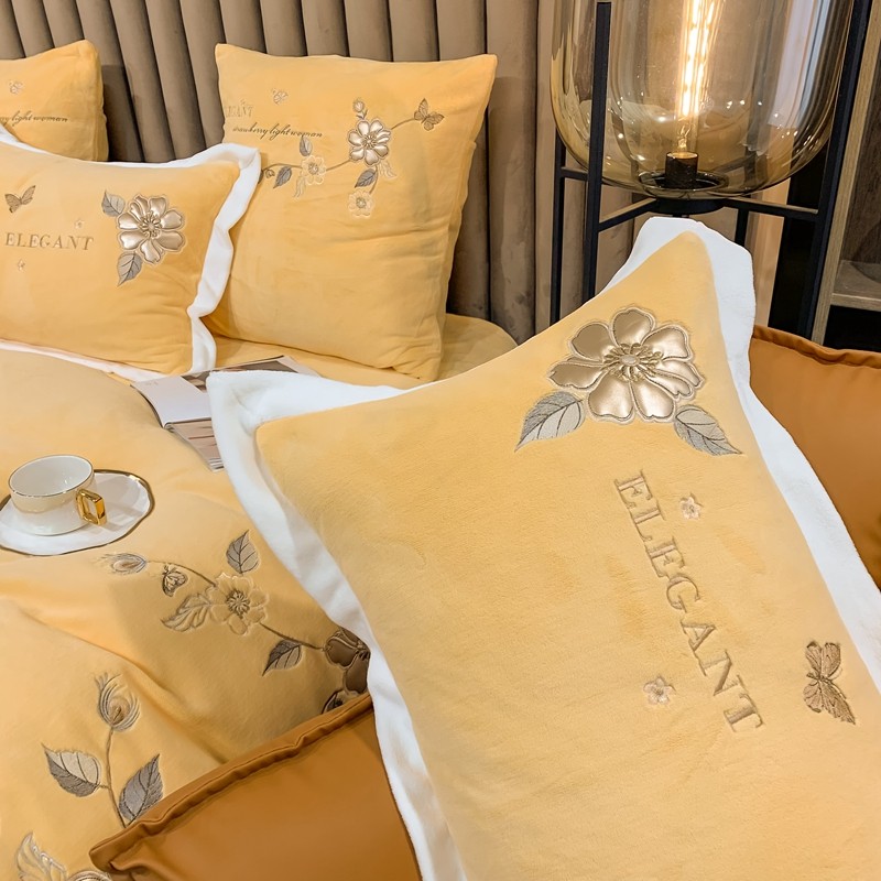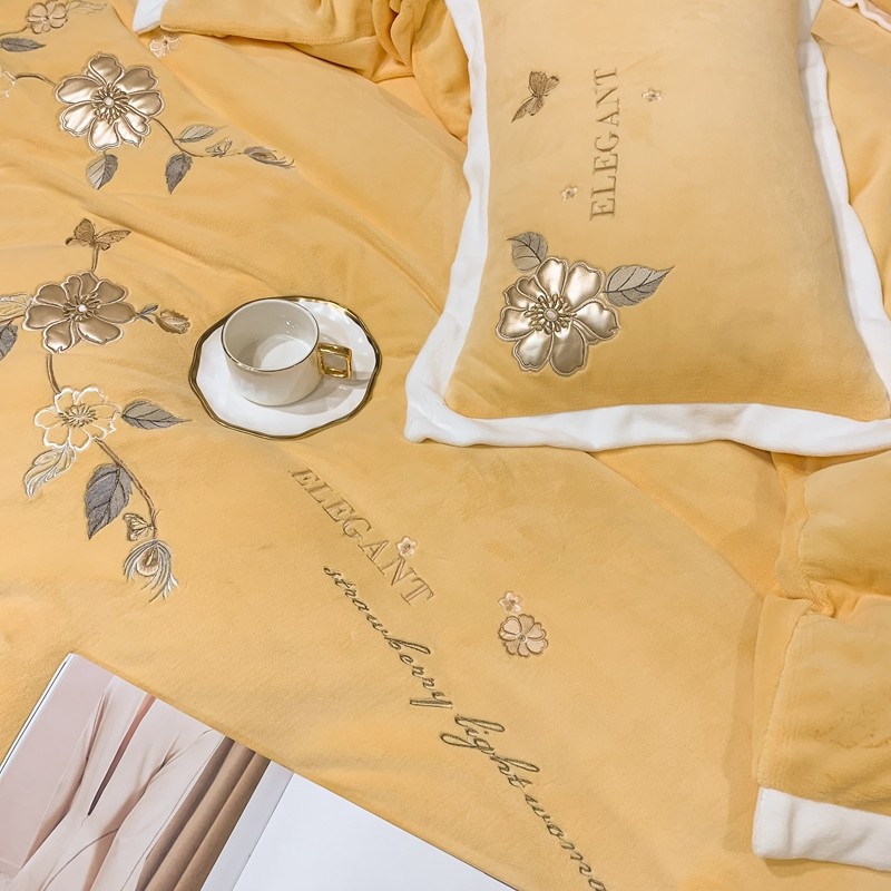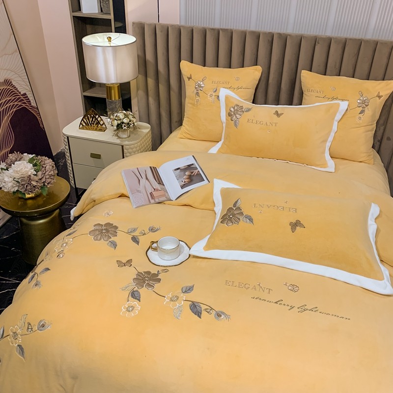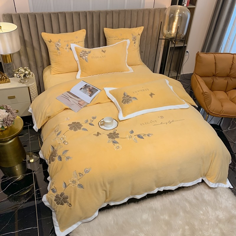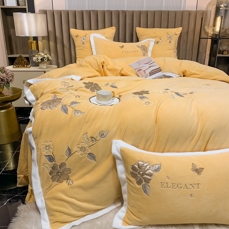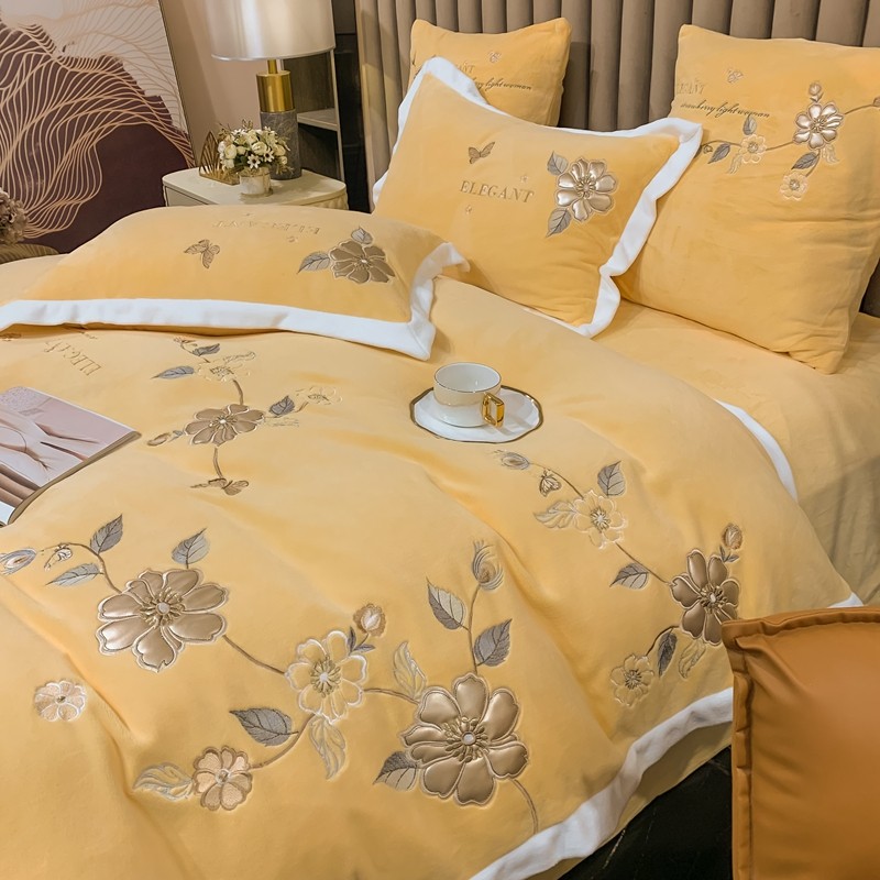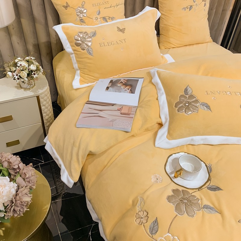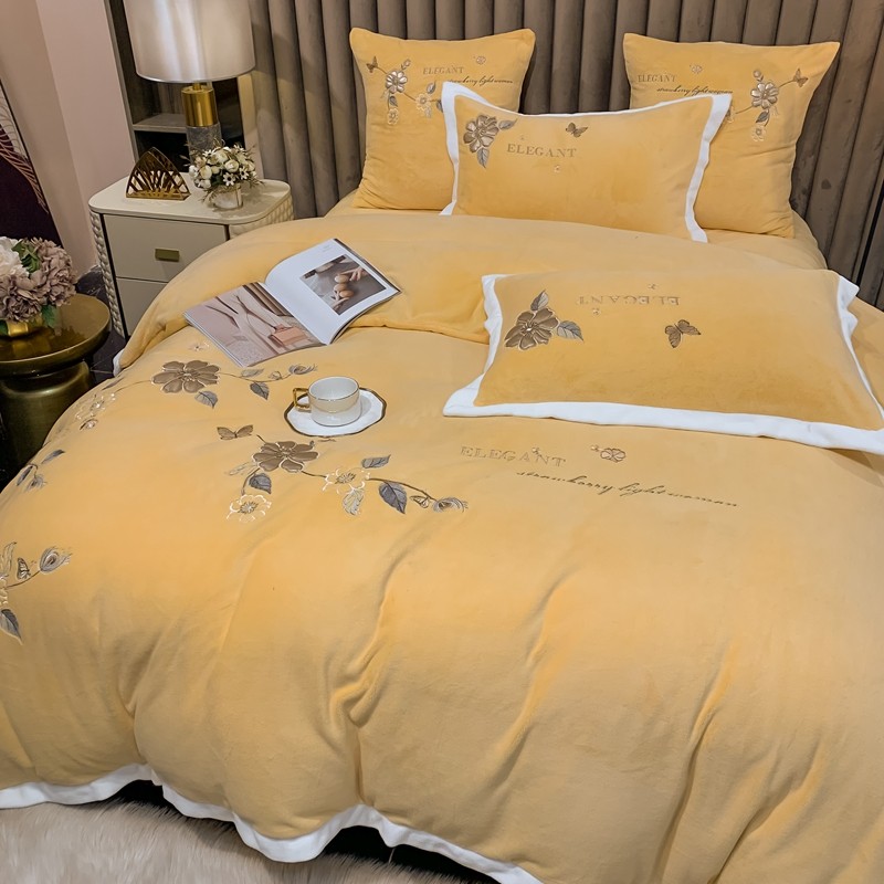 星尚 新款A类进口牛奶绒加厚水晶绒绣花四件套 罗曼蒂克-蛋黄