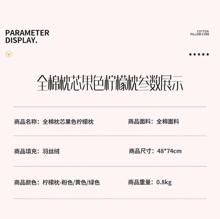 当前位置: 91家纺网 > 商品网购 > 枕头/枕芯/保健枕/颈椎枕 > 普通枕芯 > 梦叶草 2021新款全棉枕芯果色柠檬枕 粉色