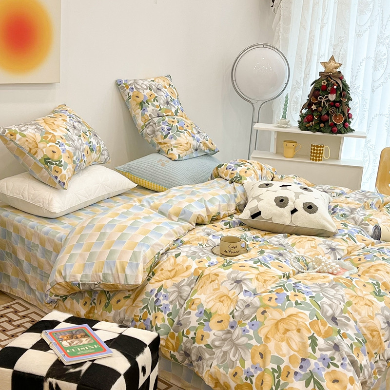 (总)昔可 2023新款全棉ins格子混搭系列四件套,ins简约绿格,粉蓝格,开心果格,学院格纹,粉绿格,海盐兰格,黄绿格,夏日蓝条,芝士黄条,紫芋泥芝士格