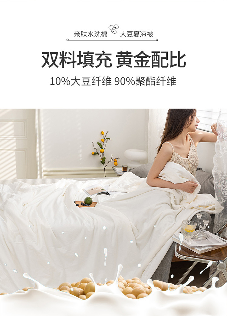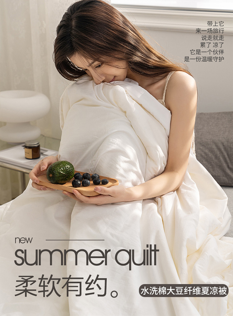 商品名称:森林人 2022新款水洗棉大豆纤维夏凉被 风格2珍珠白