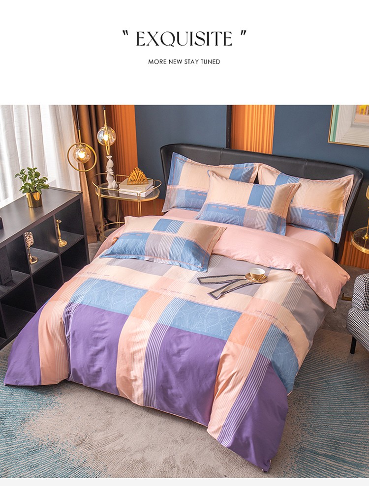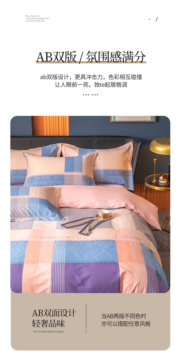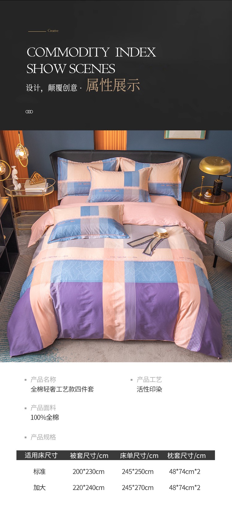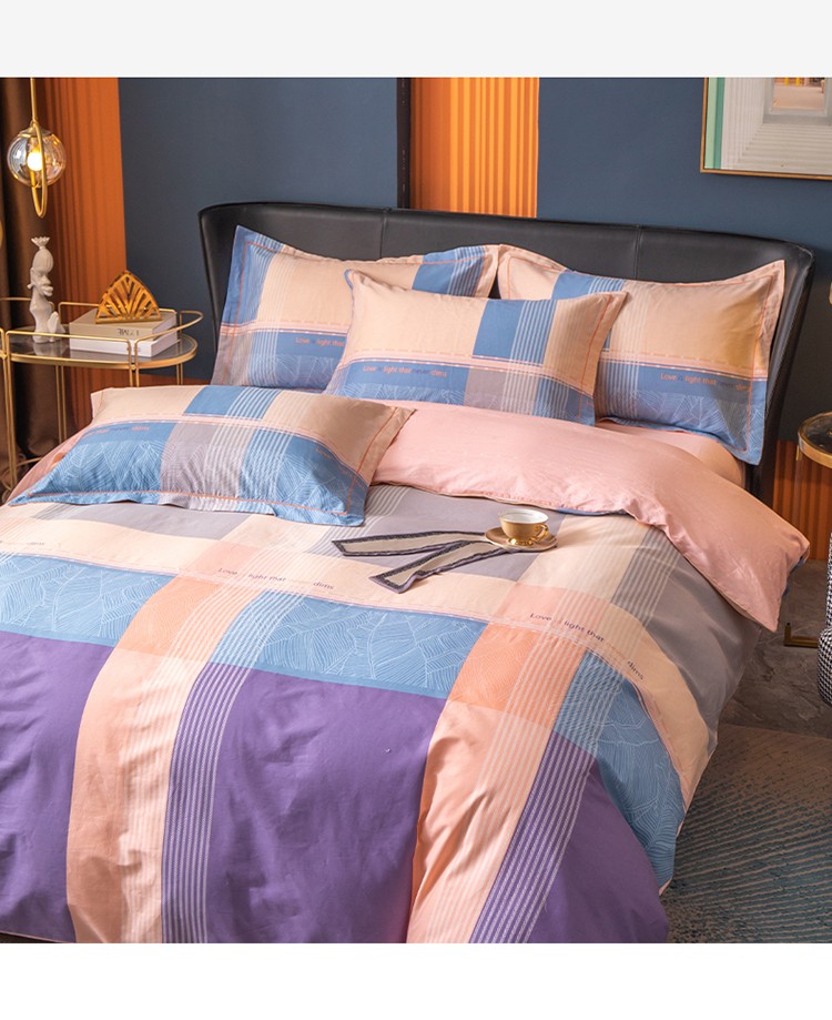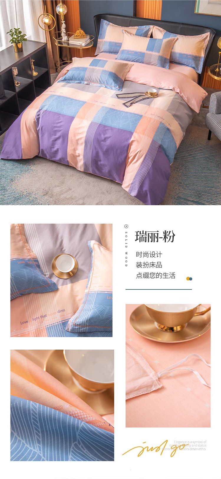 商品名称:雲归梦 2022新款全棉大版四件套 格子花型 瑞丽-粉