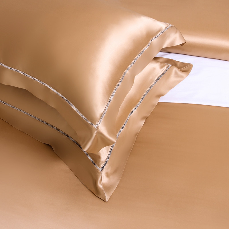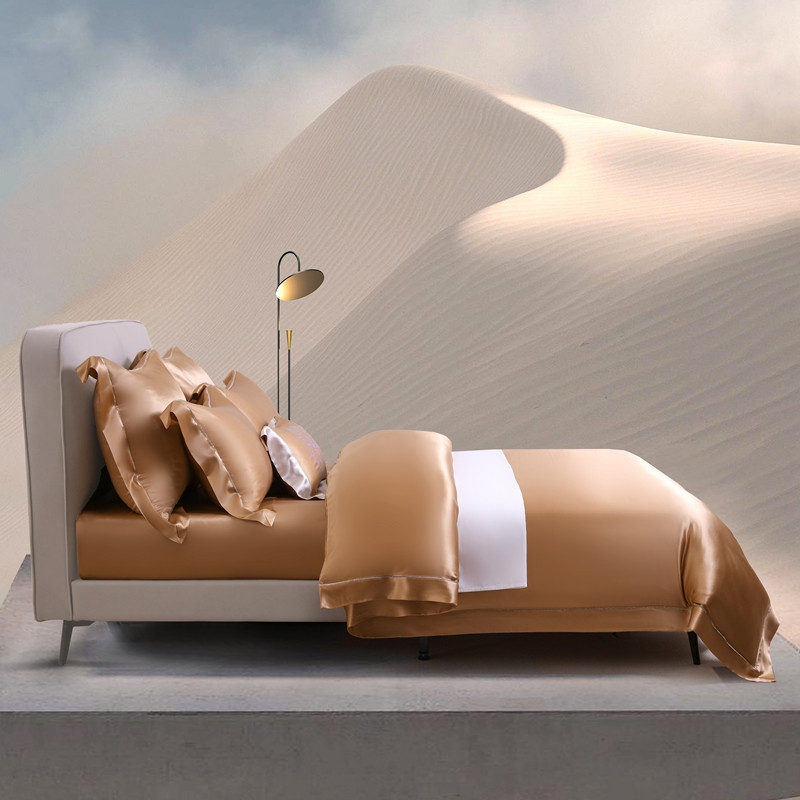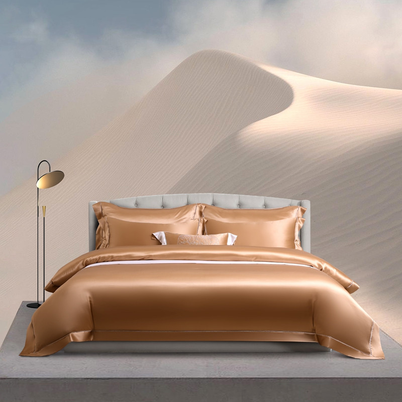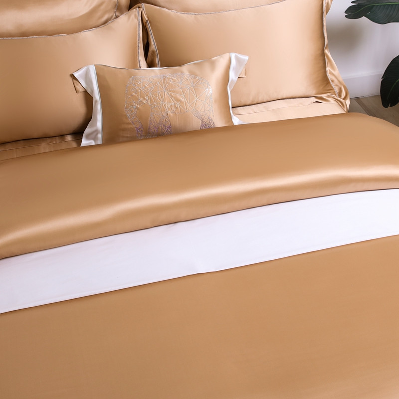 商品名称:晋瑞红顶鹅绒馆新款纯色全真丝工艺款四件套 焦糖棕
