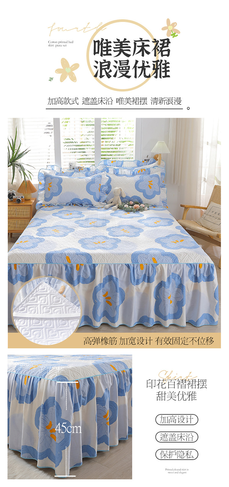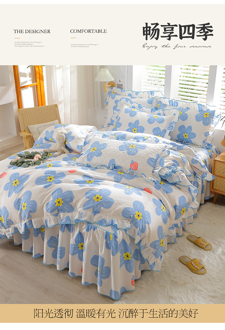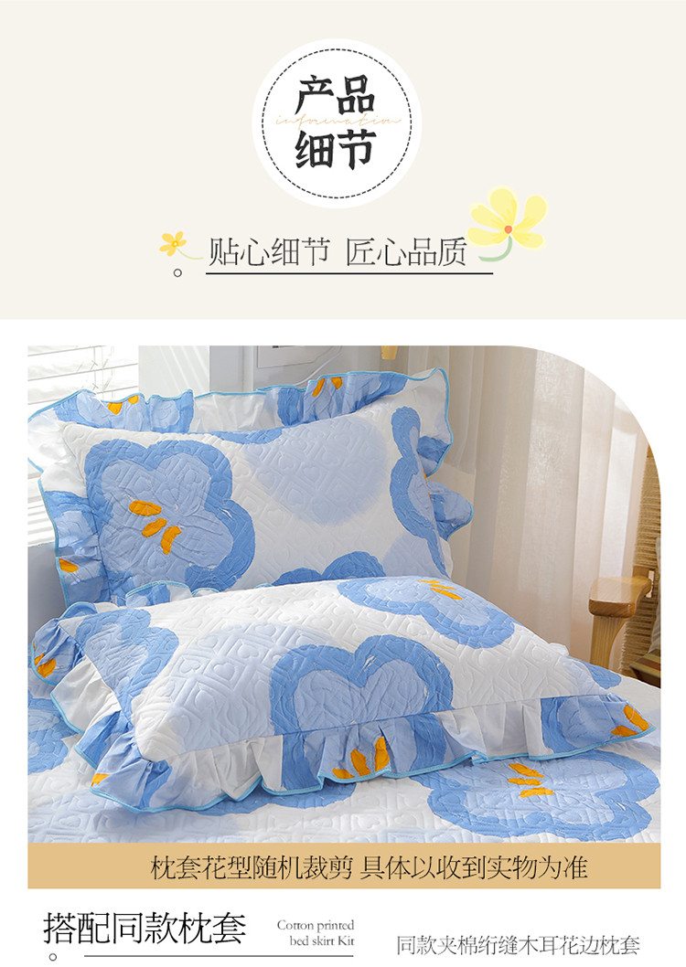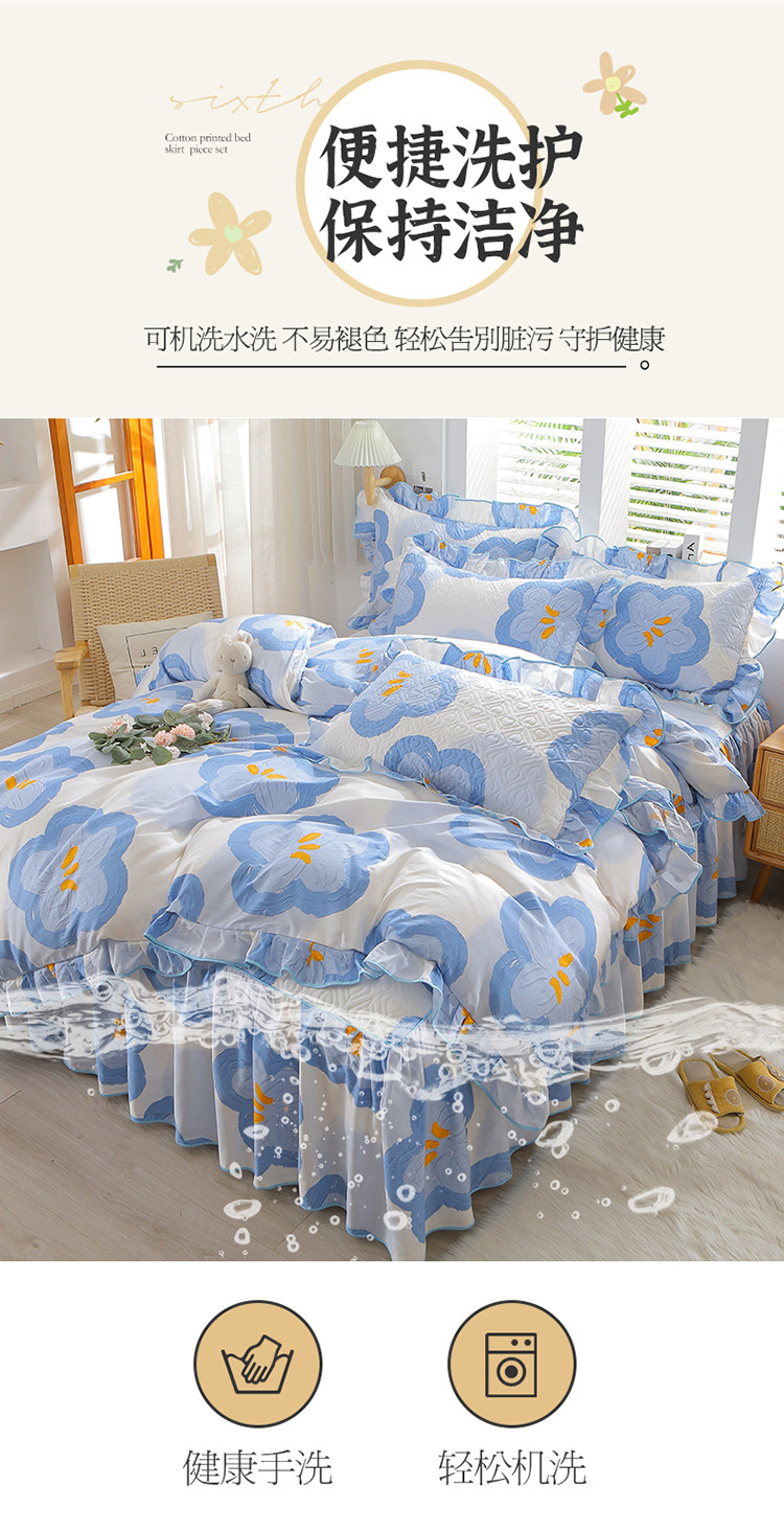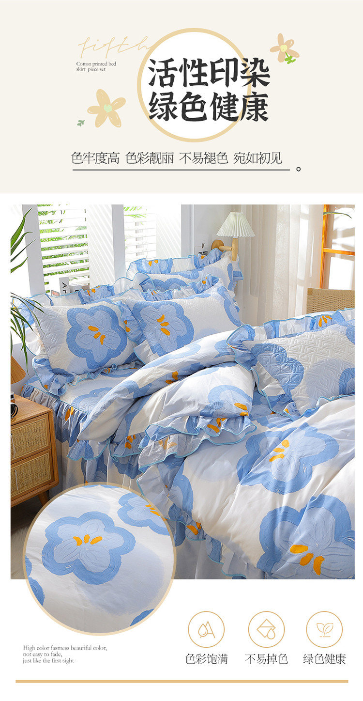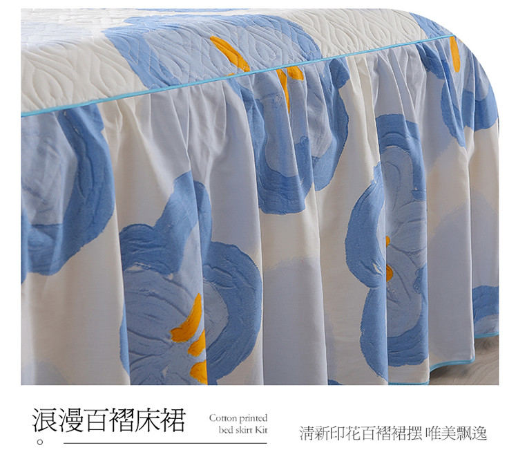 当前位置: 91家纺网 > 商品网购 > 床品套件 > 四件套 > 全棉普通四件套 > 宜凡家纺 2023新款全棉印花花边床裙四件套 花梦相依