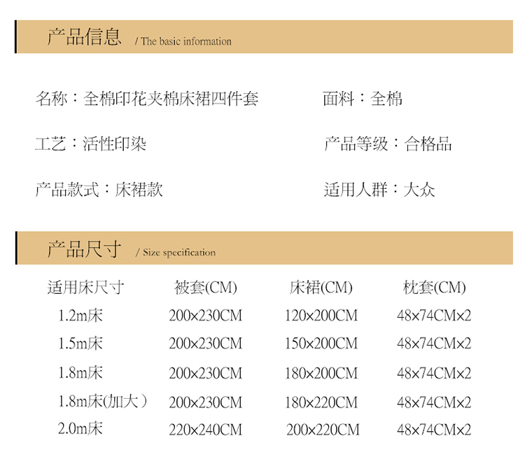 1.8m床裙款四件套(床裙180*220 ) | ¥215.00 |